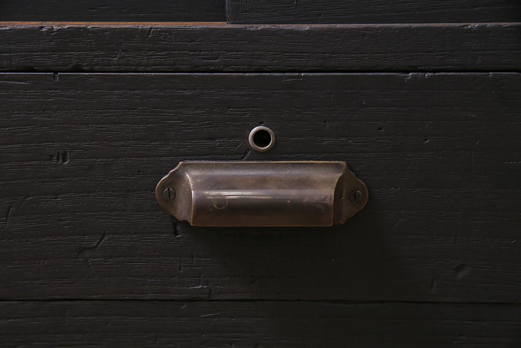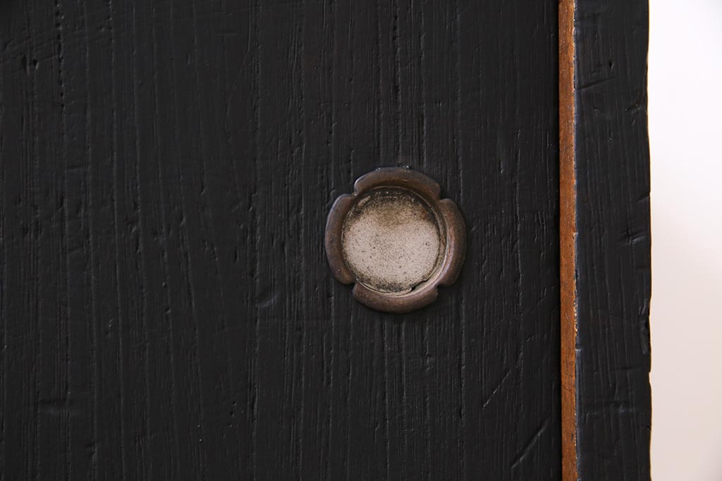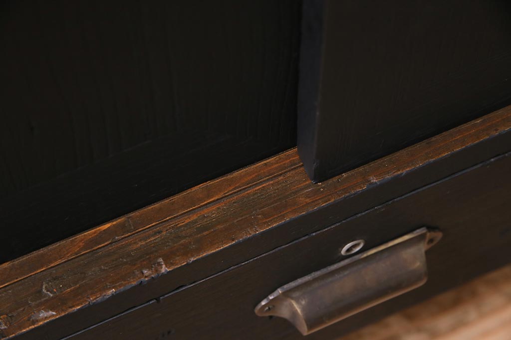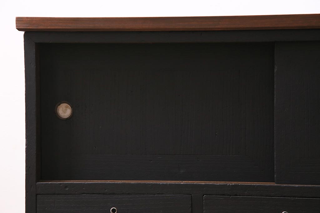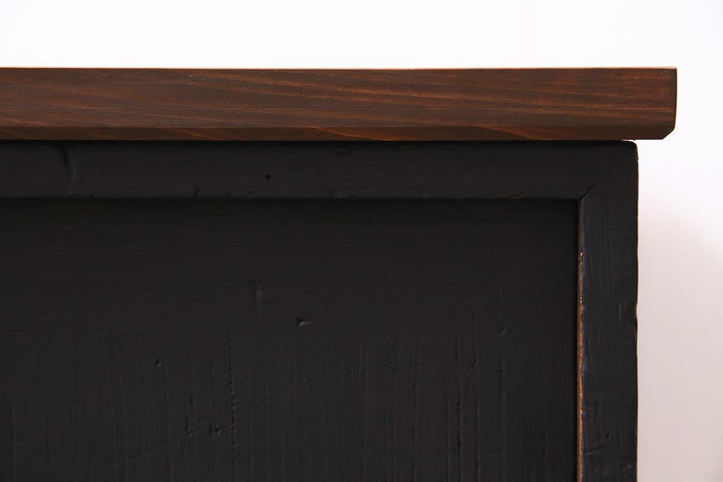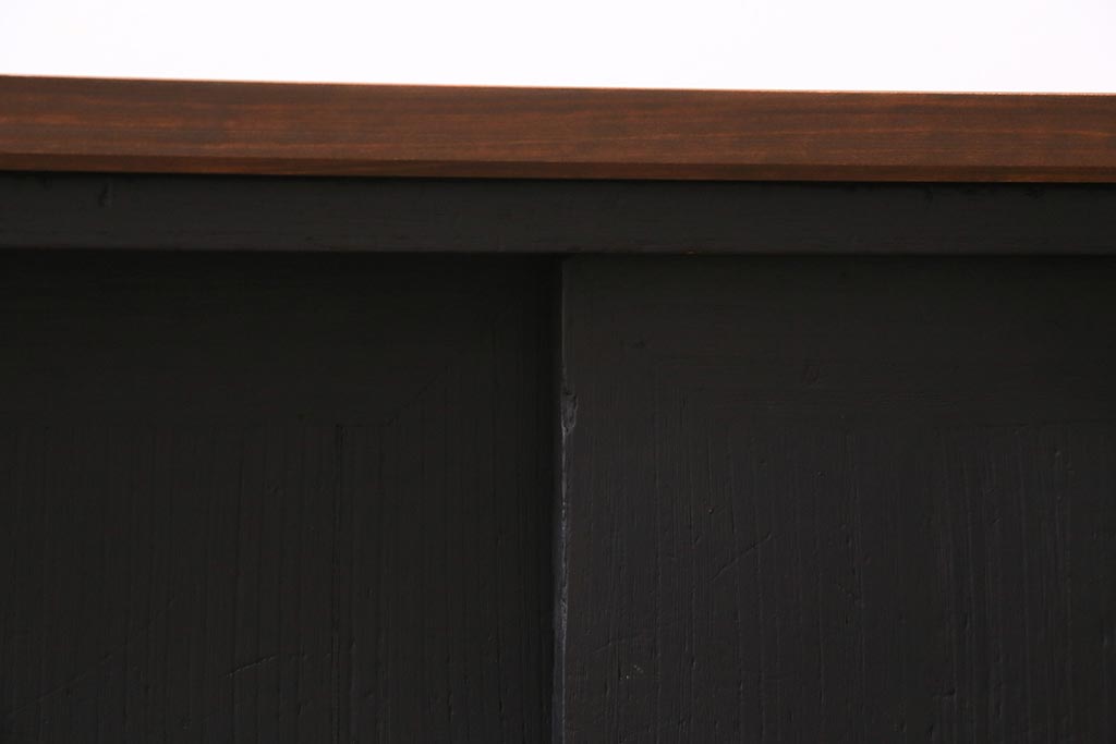 和箪笥 > アンティーク家具 和製 昭和中期 天板リメイク 前面桐材 ツートンカラーがおしゃれな鉄脚付きローボード(戸棚、収納棚)(R-045302)