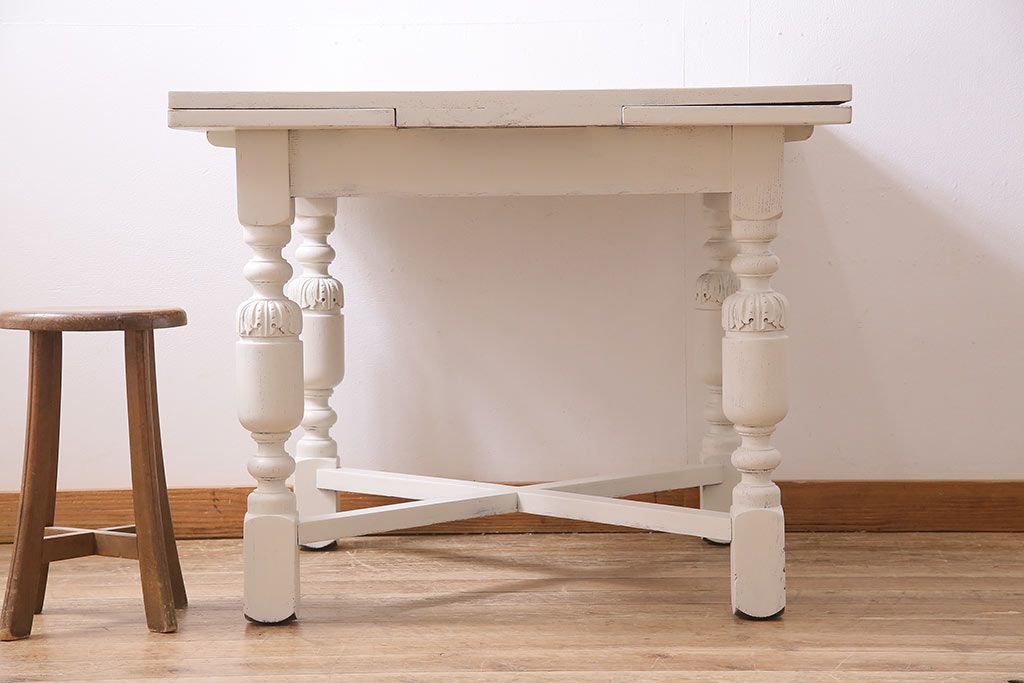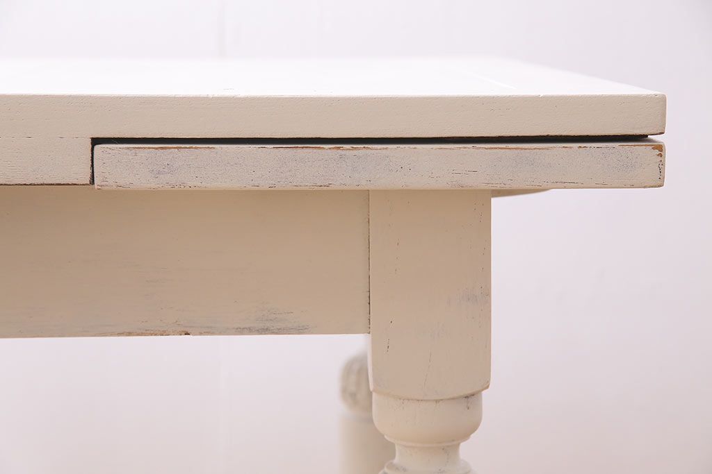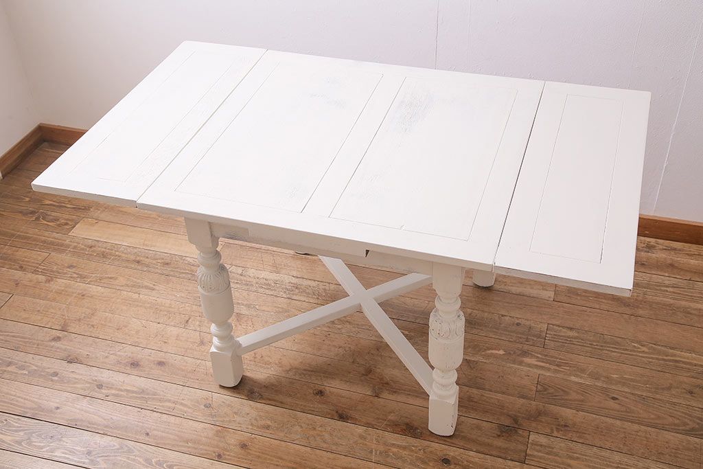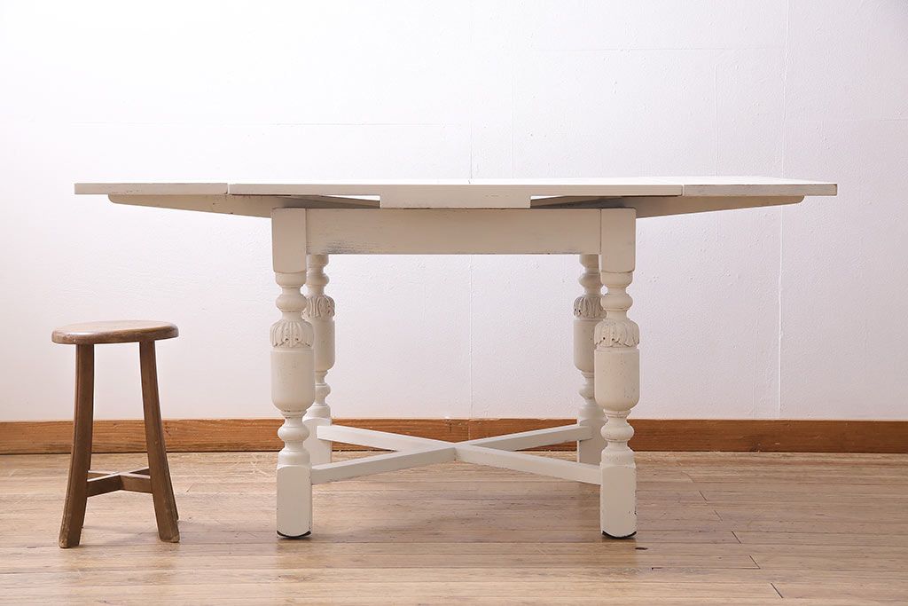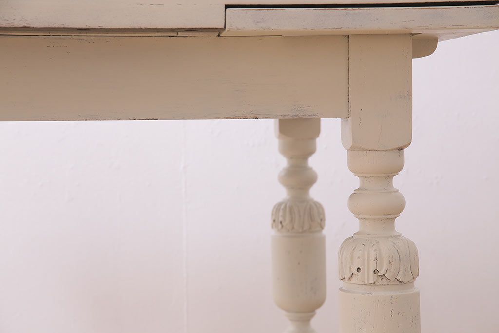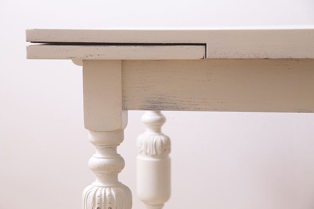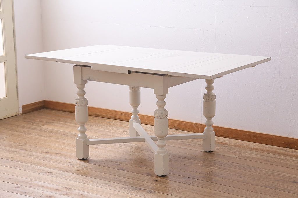 ラフジュ工房> テーブル> エクステンションテーブル > アンティーク家具 イギリスアンティーク 白いペイントのドローリーフテーブル(エクステンションテーブル、ダイニングテーブル)(R-045218)