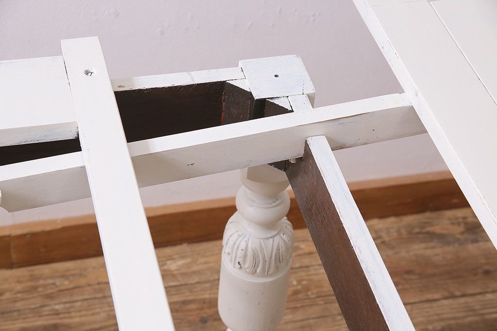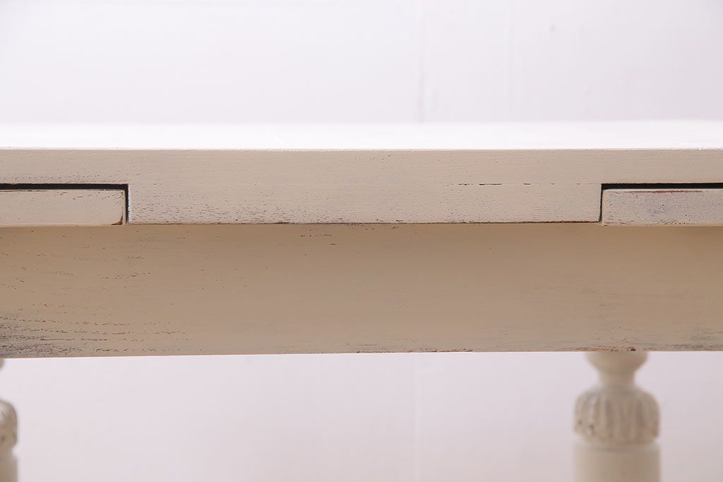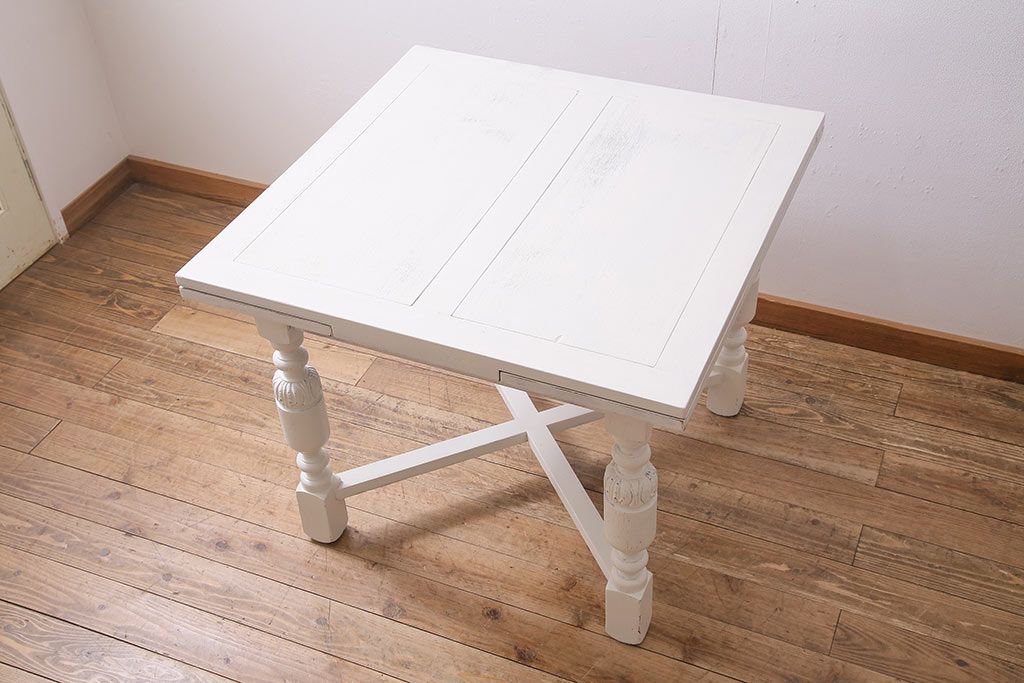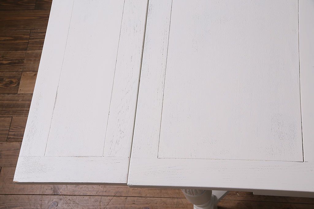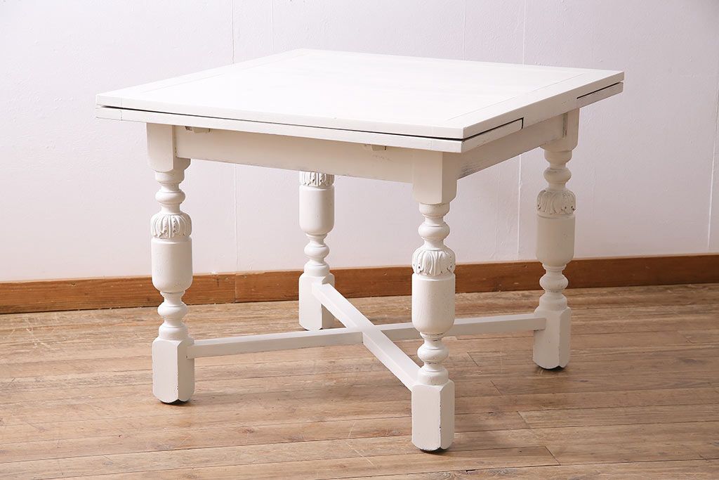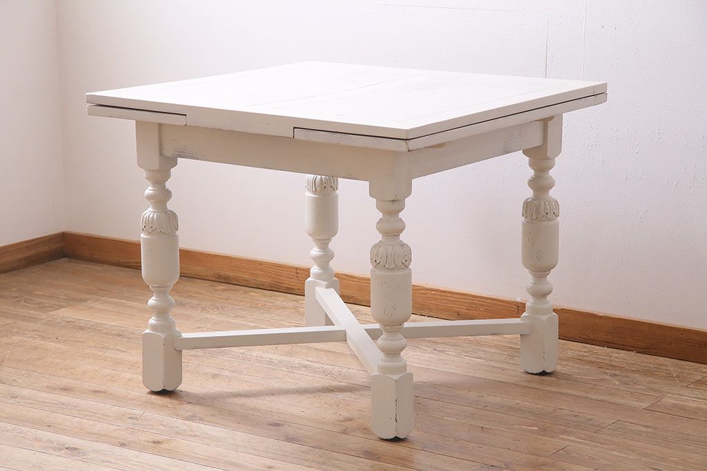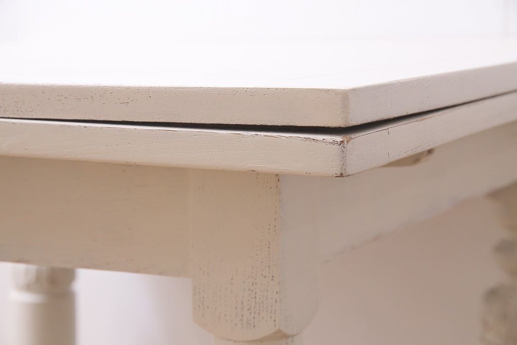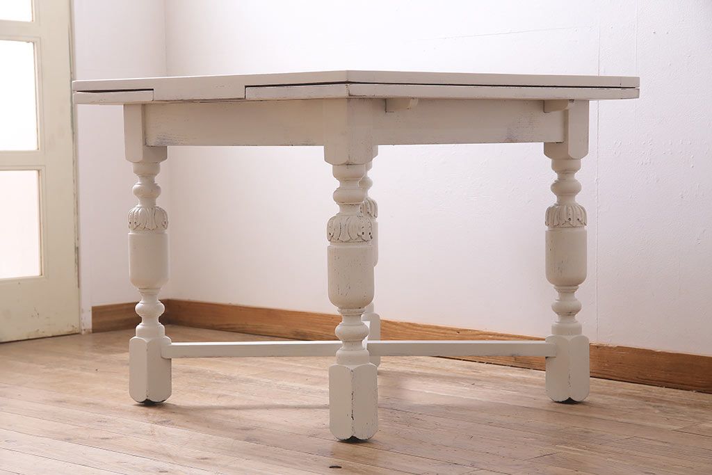ラフジュ工房> テーブル> エクステンションテーブル > アンティーク家具 イギリスアンティーク 白いペイントのドローリーフテーブル(エクステンションテーブル、ダイニングテーブル)(R-045218)