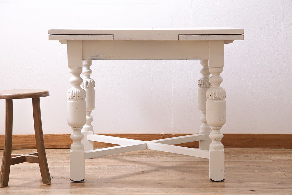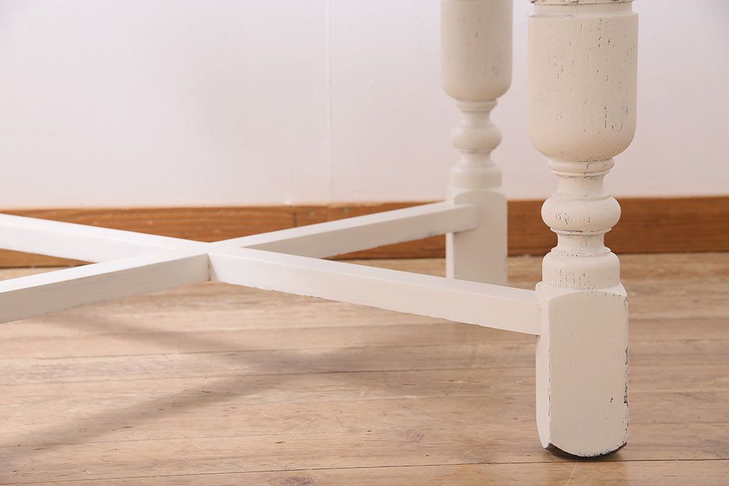 ラフジュ工房> テーブル> 4人用ダイニングテーブル > アンティーク家具 イギリスアンティーク 白いペイントのドローリーフテーブル(エクステンションテーブル、ダイニングテーブル)(R-045218)