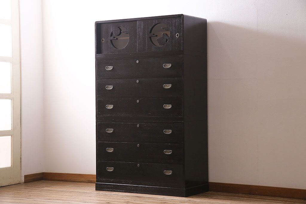 中古 引き戸リメイク 月とうさぎの丸窓が風情漂う加茂総桐箪笥(総桐たんす、衣装箪笥、戸棚、和タンス)(R-045409)です。