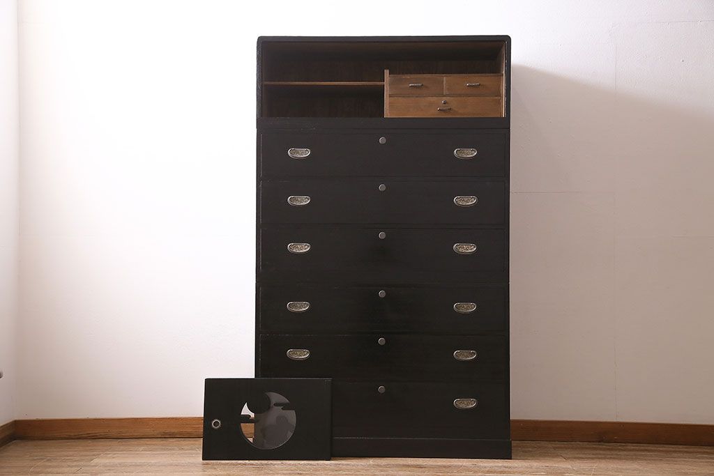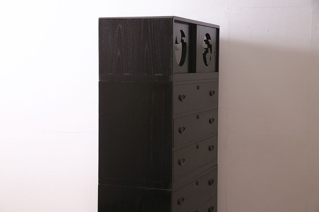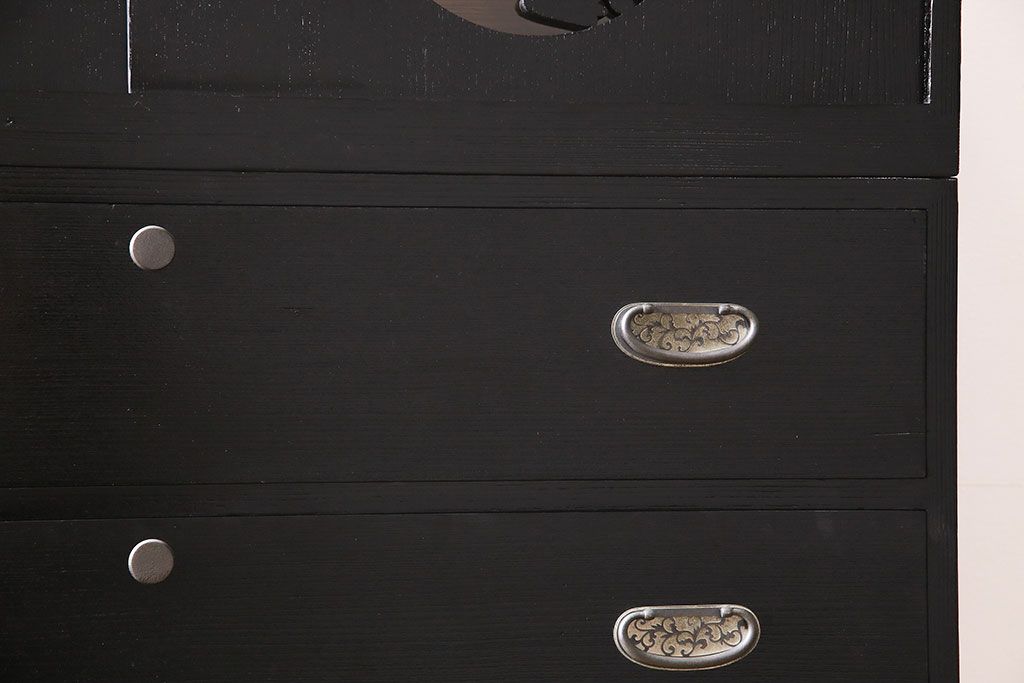和箪笥> 衣装箪笥 > 中古 引き戸リメイク 月とうさぎの丸窓が風情漂う加茂総桐箪笥(総桐たんす、衣装箪笥、戸棚、和タンス(R-045409)