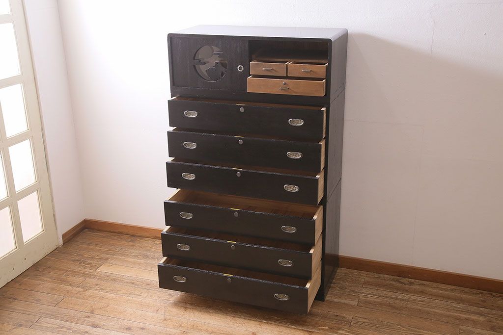 中古 引き戸リメイク 月とうさぎの丸窓が風情漂う加茂総桐箪笥(総桐たんす、衣装箪笥、戸棚、和タンス(R-045409)