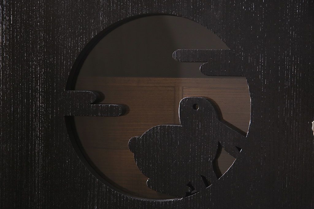 丸窓の中には月とうさぎの透かし彫りの意匠を