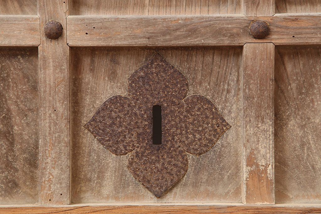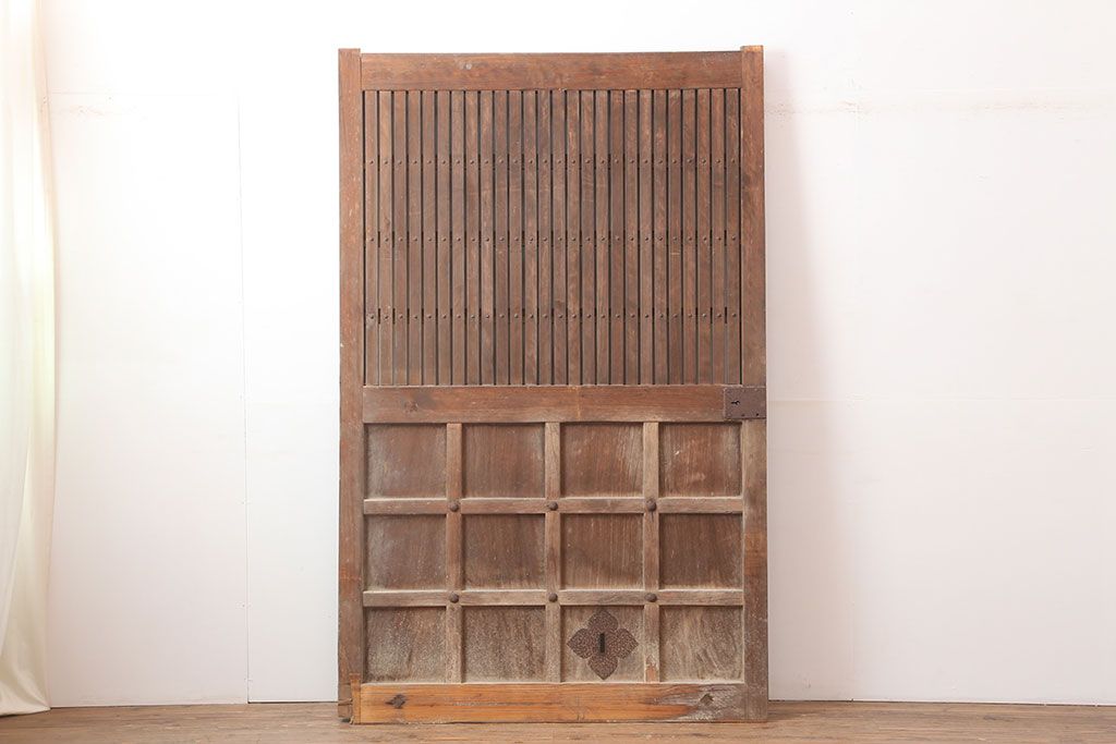 ラフジュ工房> ドア・建具> 玄関ドア・玄関戸 > アンティーク建具 大正昭和初期 ヒノキ材 升目格子が目を惹く蔵戸(玄関戸、引き戸、建具)(R-044898)