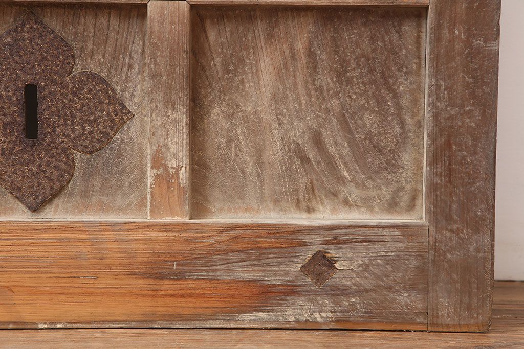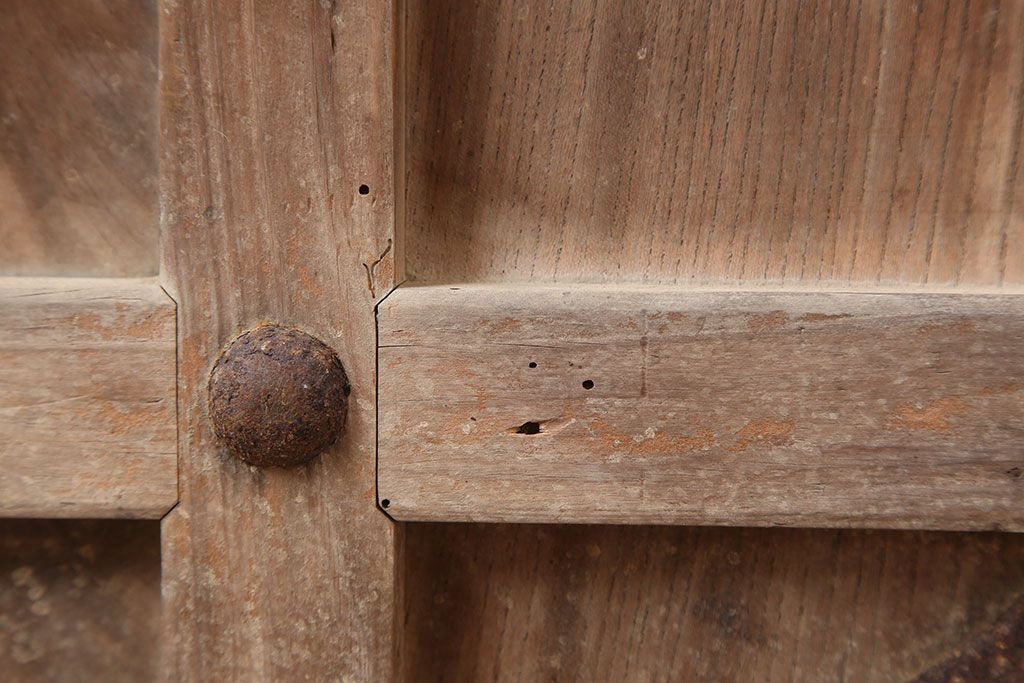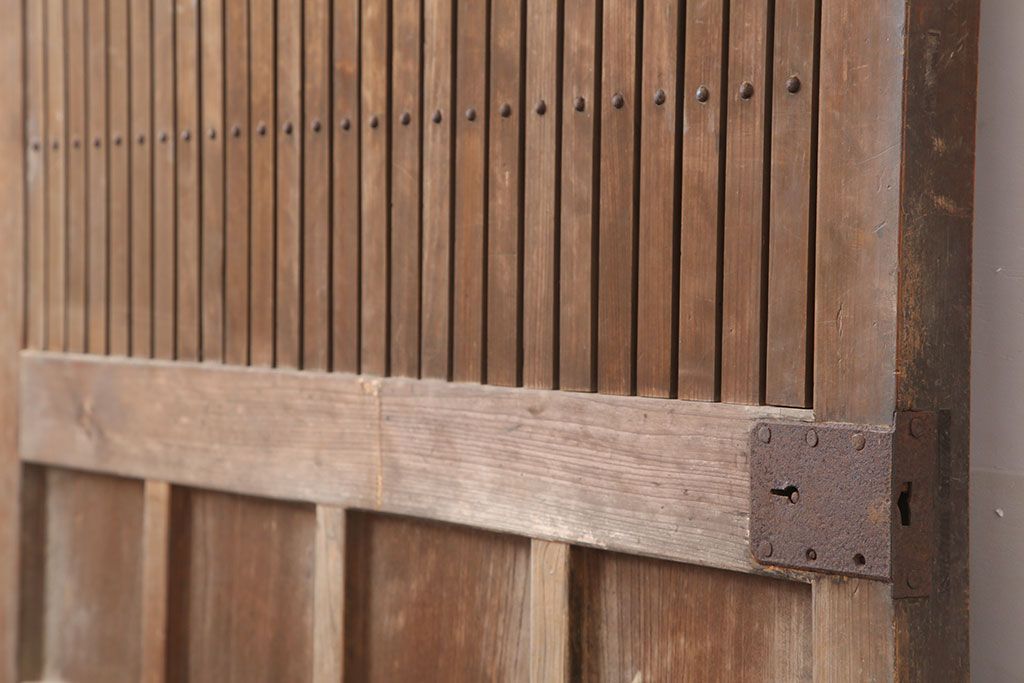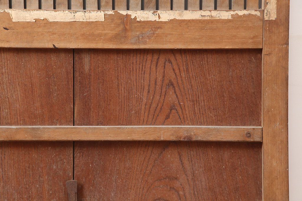 ラフジュ工房> ドア・建具> 蔵戸 > アンティーク建具 大正昭和初期 ヒノキ材 升目格子が目を惹く蔵戸(玄関戸、引き戸、建具)(R-044898)