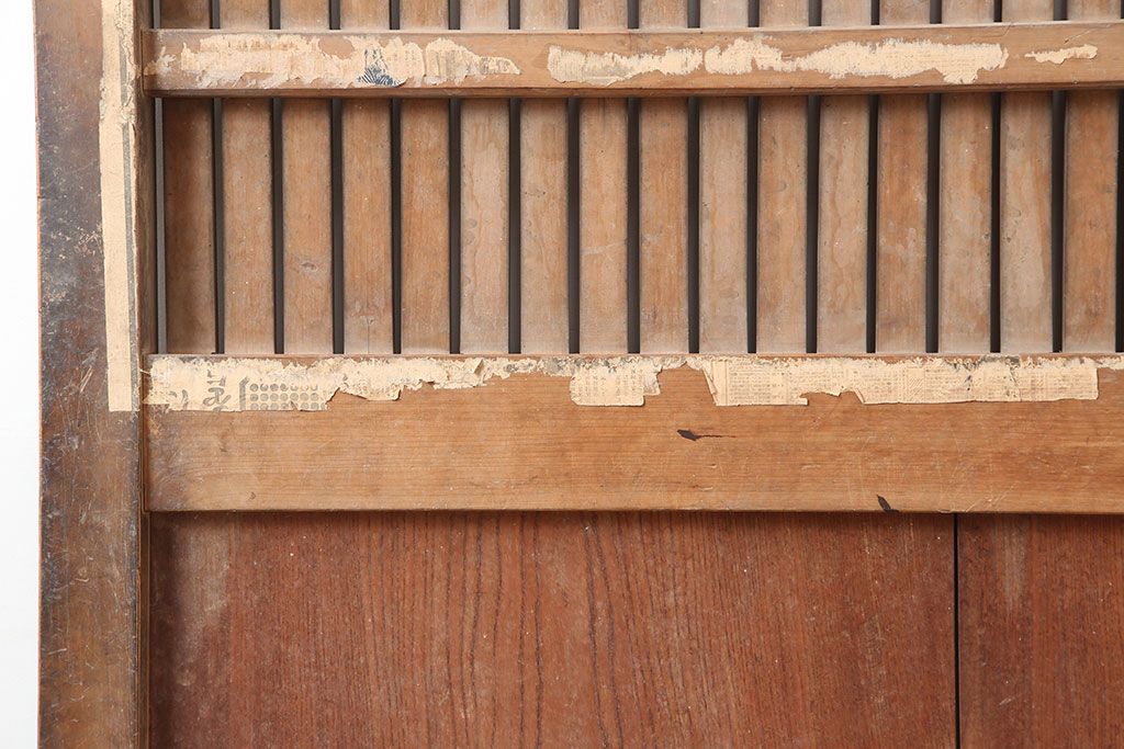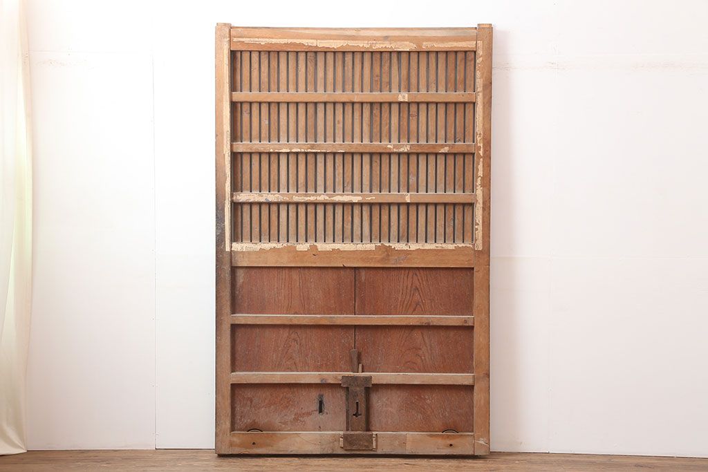 アンティーク建具 大正昭和初期 ヒノキ材 升目格子が目を惹く蔵戸(玄関戸、引き戸、建具)(R-044898)