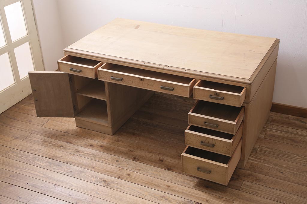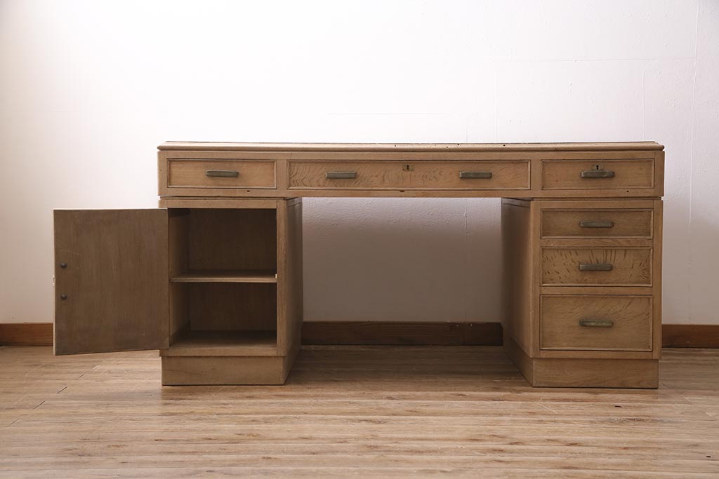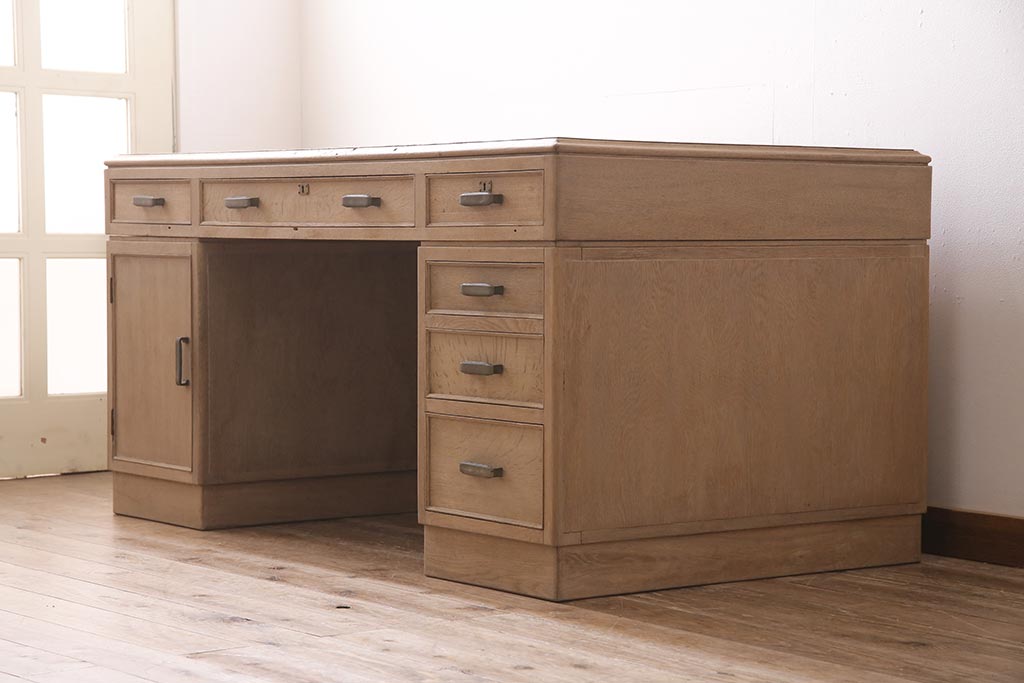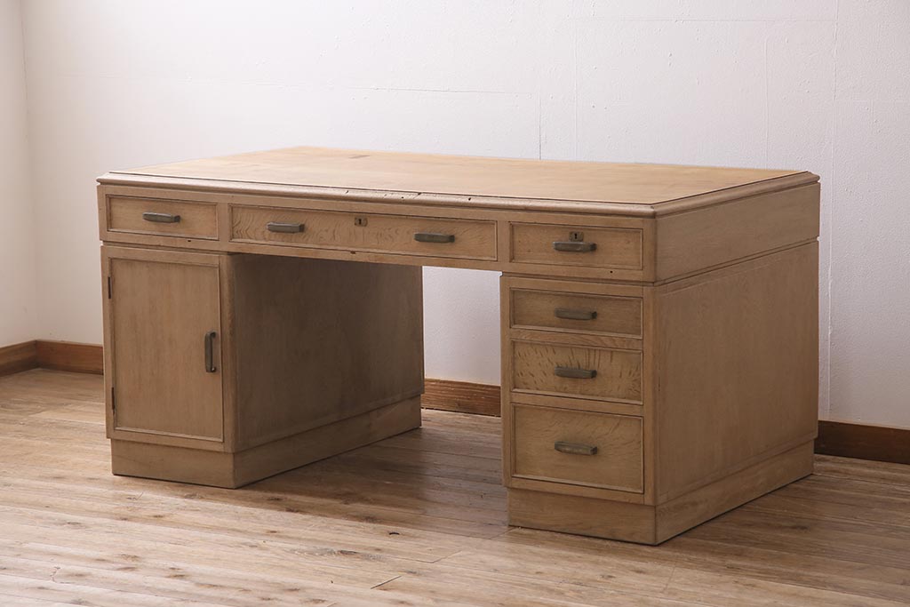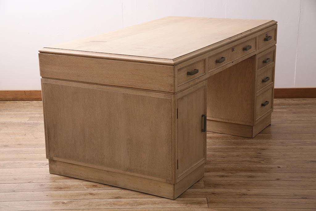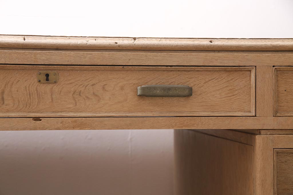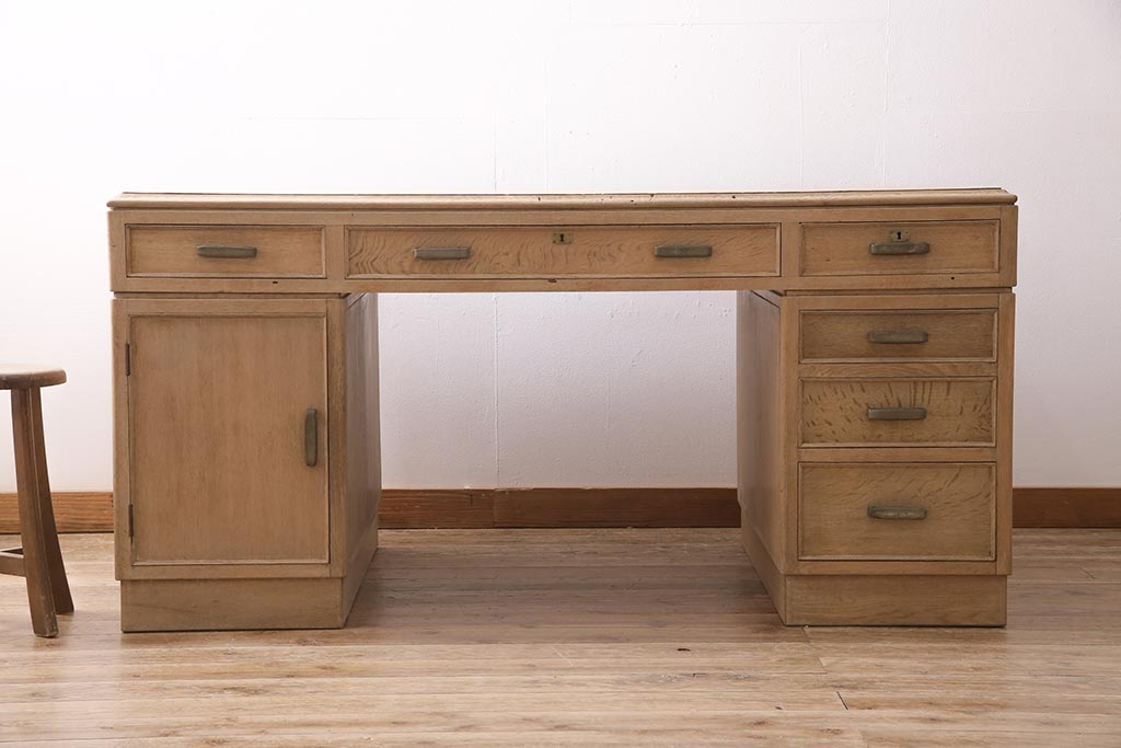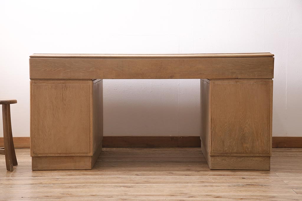 アンティーク家具 昭和中期 ストリップド(剥離) ナラ材 組立て式 優しい色合いの木肌が素敵な両袖デスク(机、在宅ワーク、在宅用ワークデスク、作業台)(R-045519)