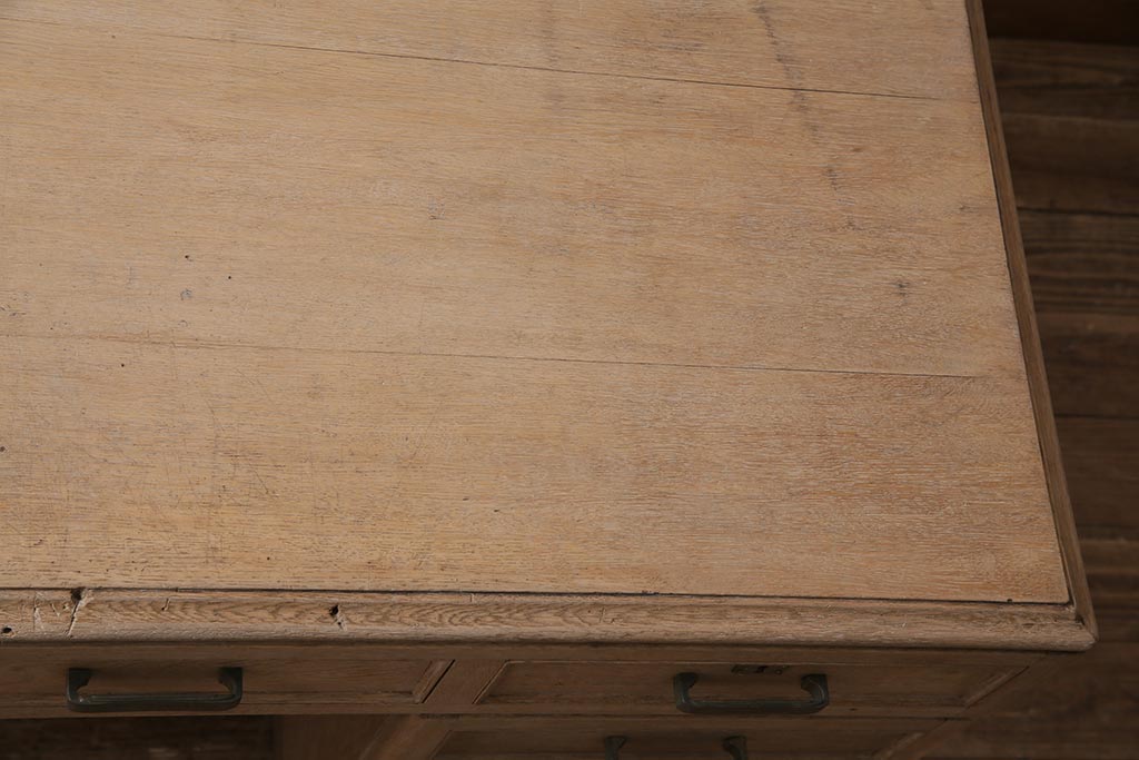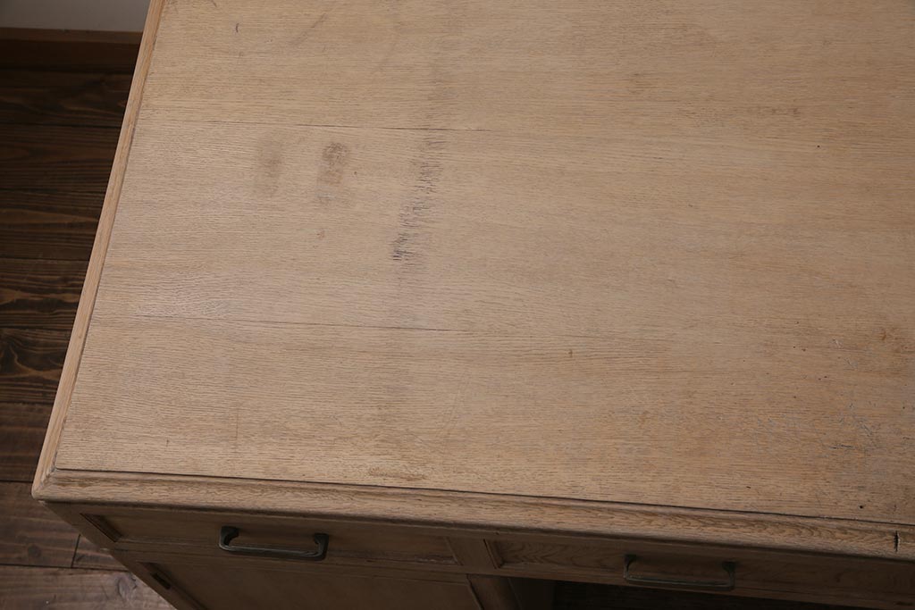 テーブル> 作業台 > アンティーク家具 昭和中期 ストリップド(剥離) ナラ材 組立て式 優しい色合いの木肌が素敵な両袖デスク(机、在宅ワーク、在宅用ワークデスク、作業台)(R-045519)