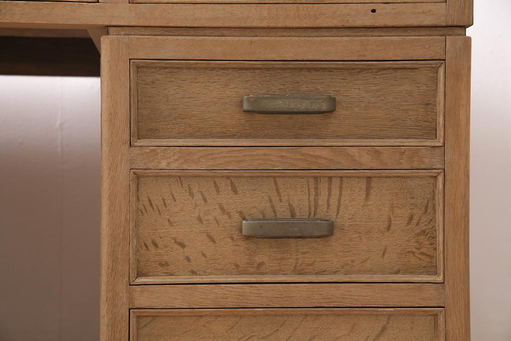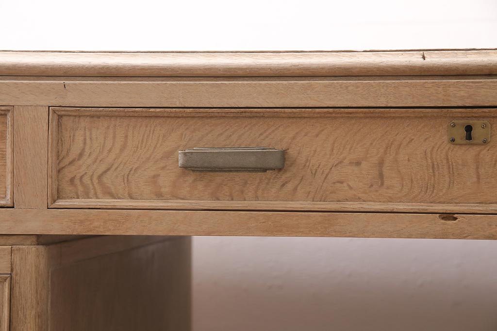 ストリップド(剥離)家具 > アンティーク家具 昭和中期 ストリップド(剥離) ナラ材 組立て式 優しい色合いの木肌が素敵な両袖デスク(机、在宅ワーク、在宅用ワークデスク、作業台)(R-045519)