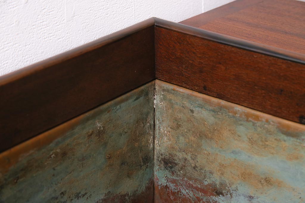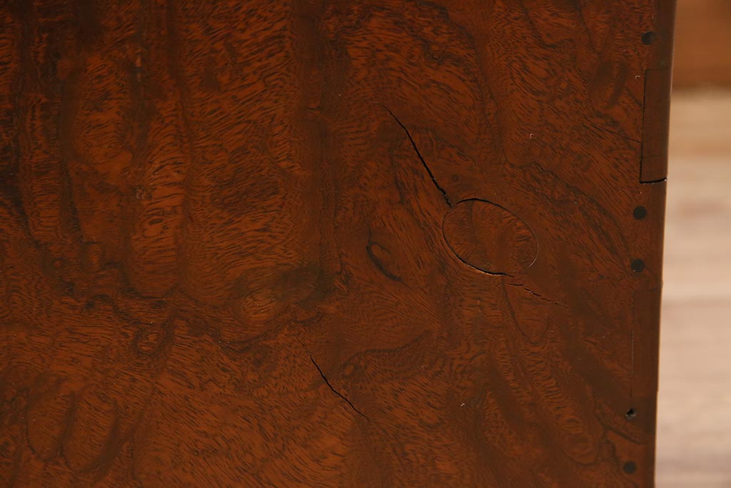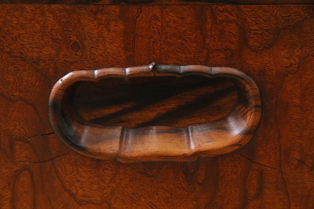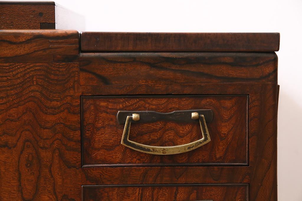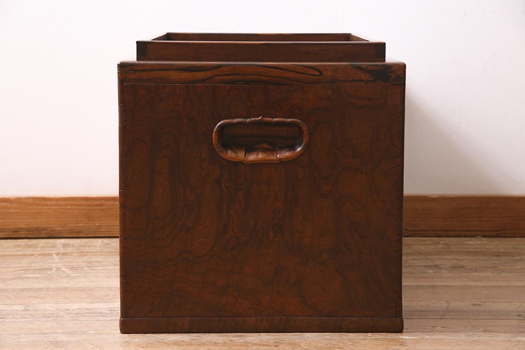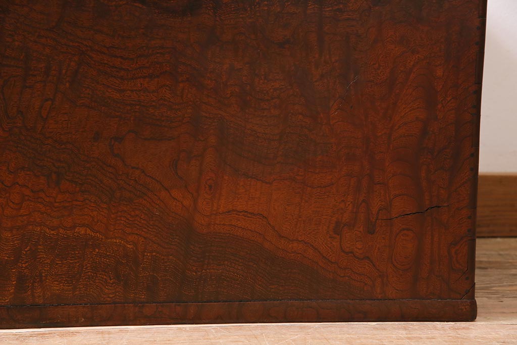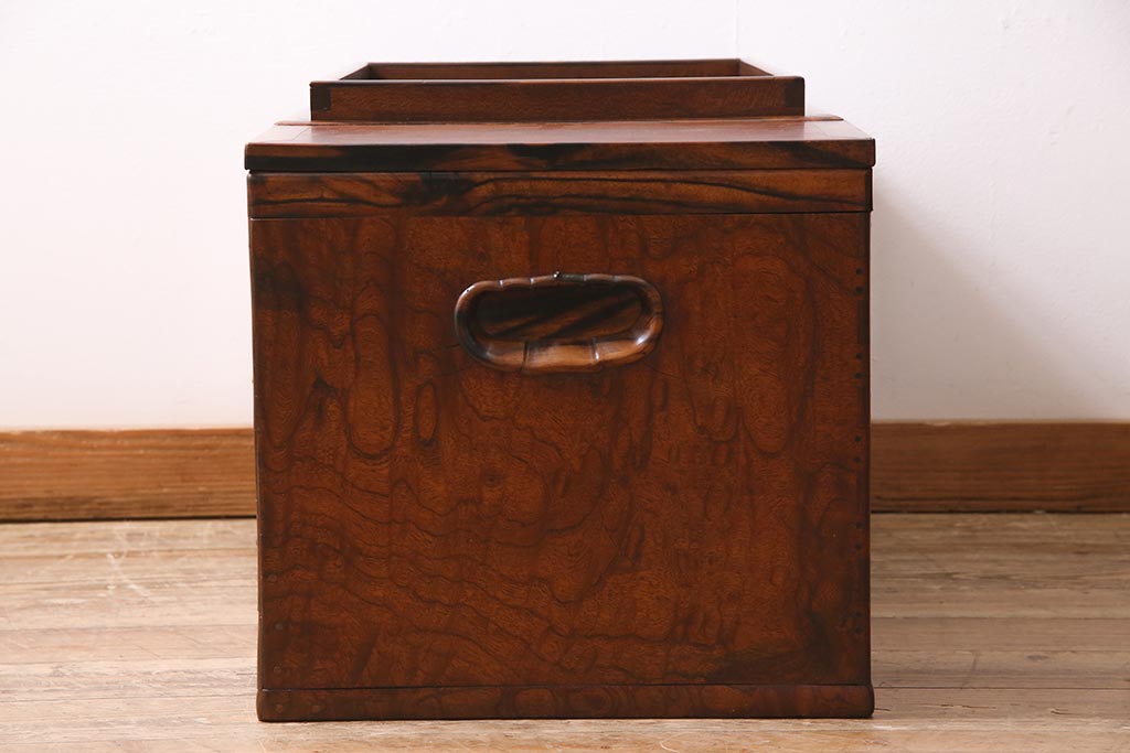 火鉢> 木製火鉢 > アンティーク雑貨 昭和初期 ケヤキ材・縁黒柿材 和の高級感漂う長火鉢(木製火鉢)(R-045515)