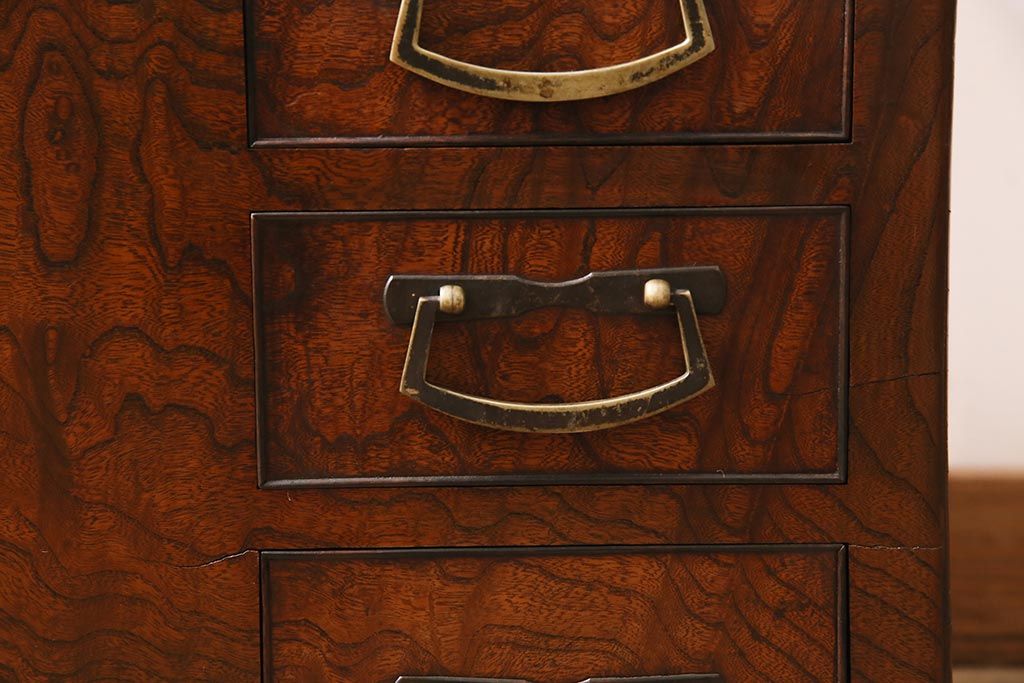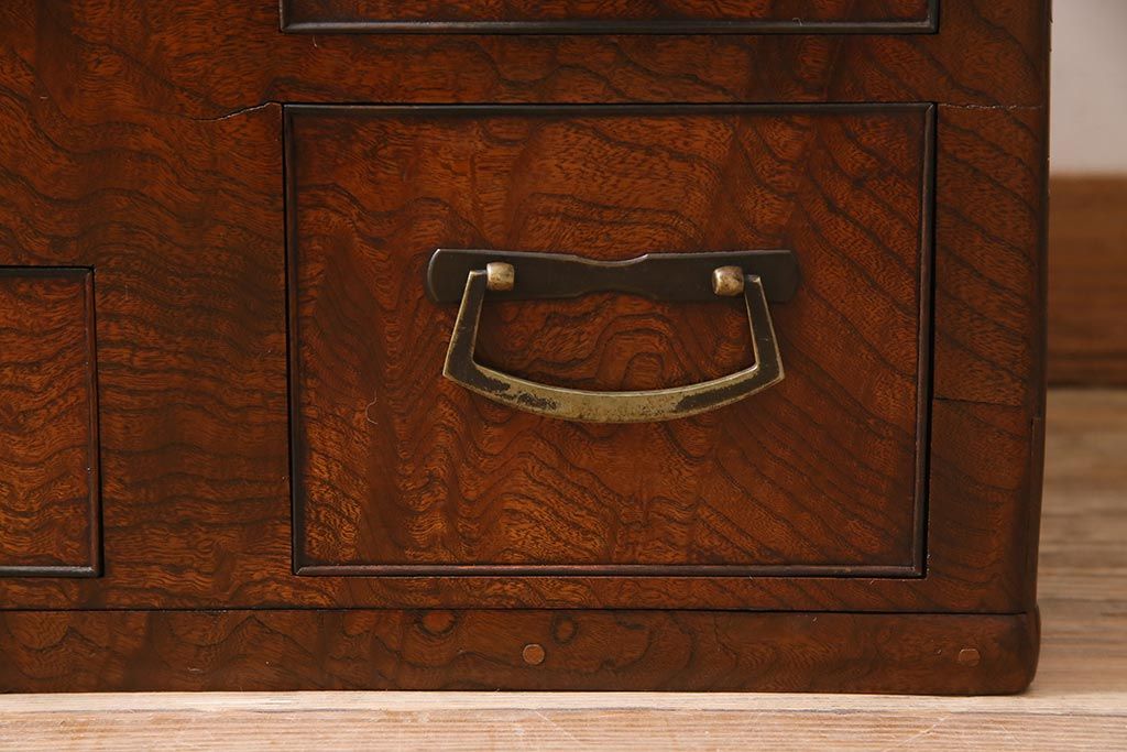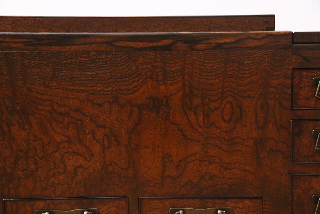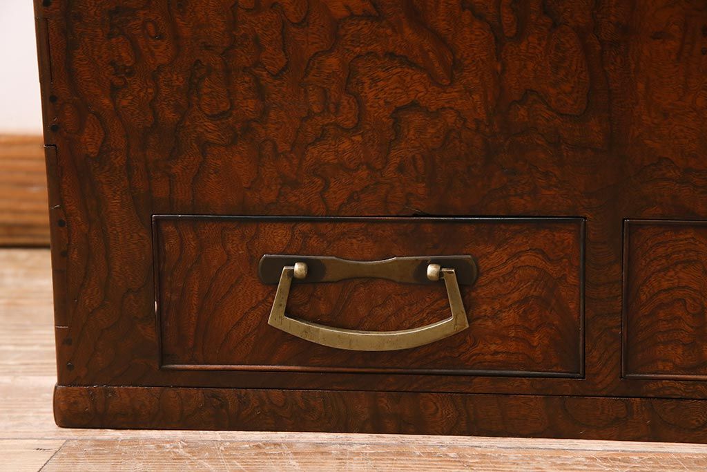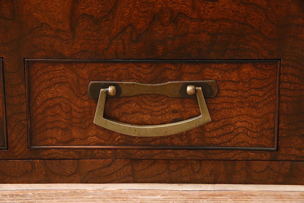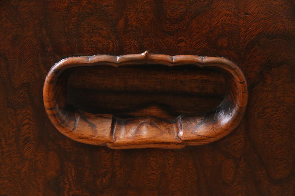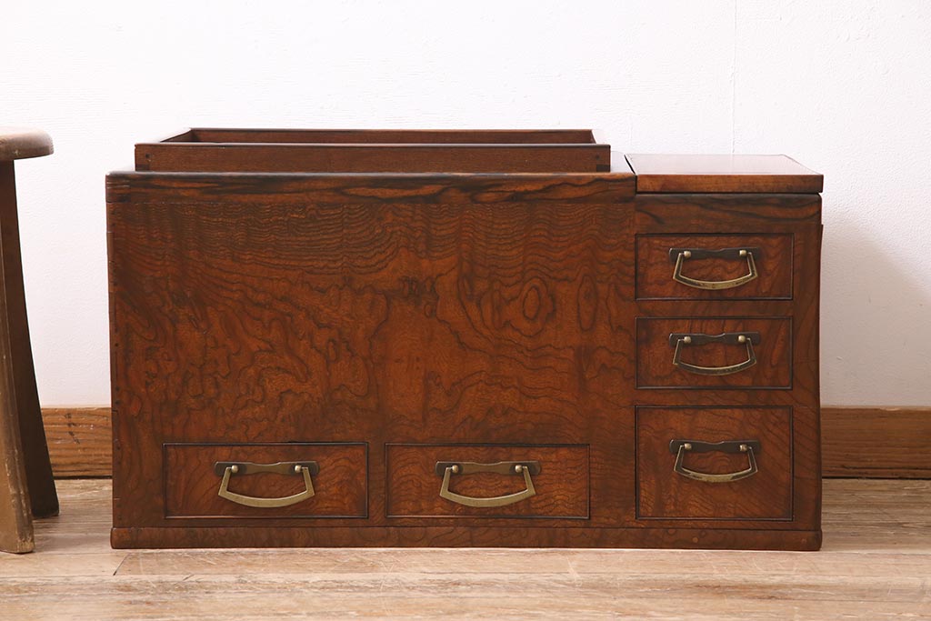 アンティーク雑貨 昭和初期 ケヤキ材・縁黒柿材 和の高級感漂う長火鉢(木製火鉢)(R-045515)