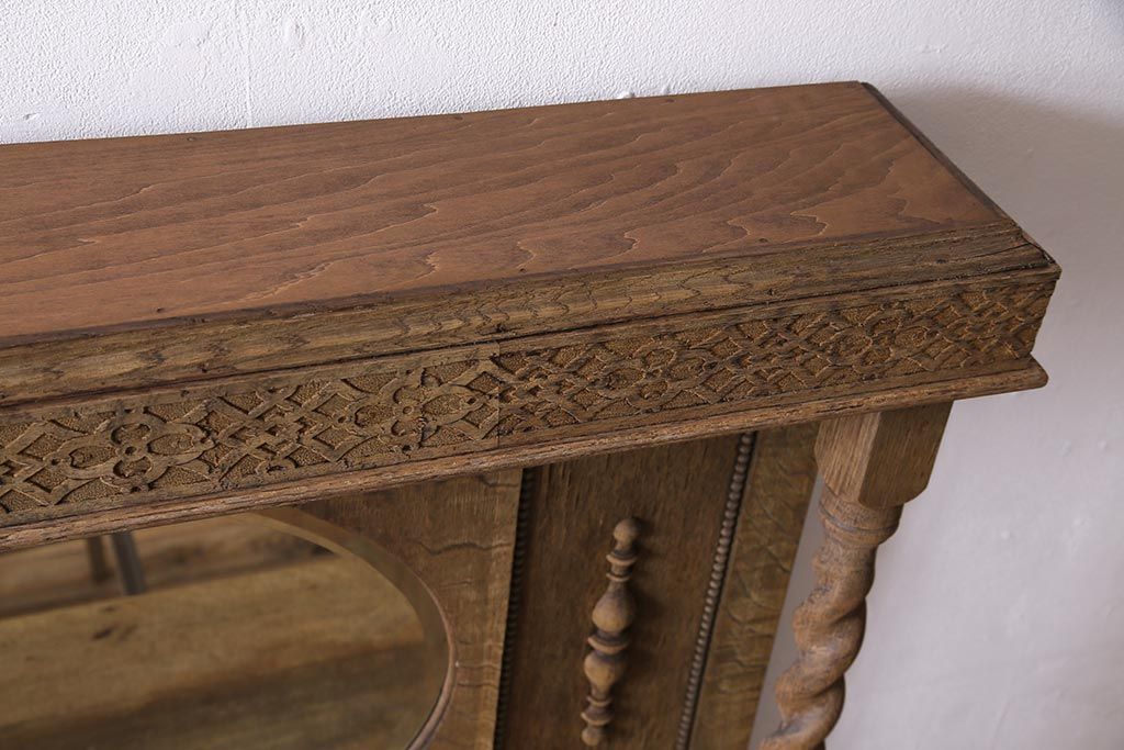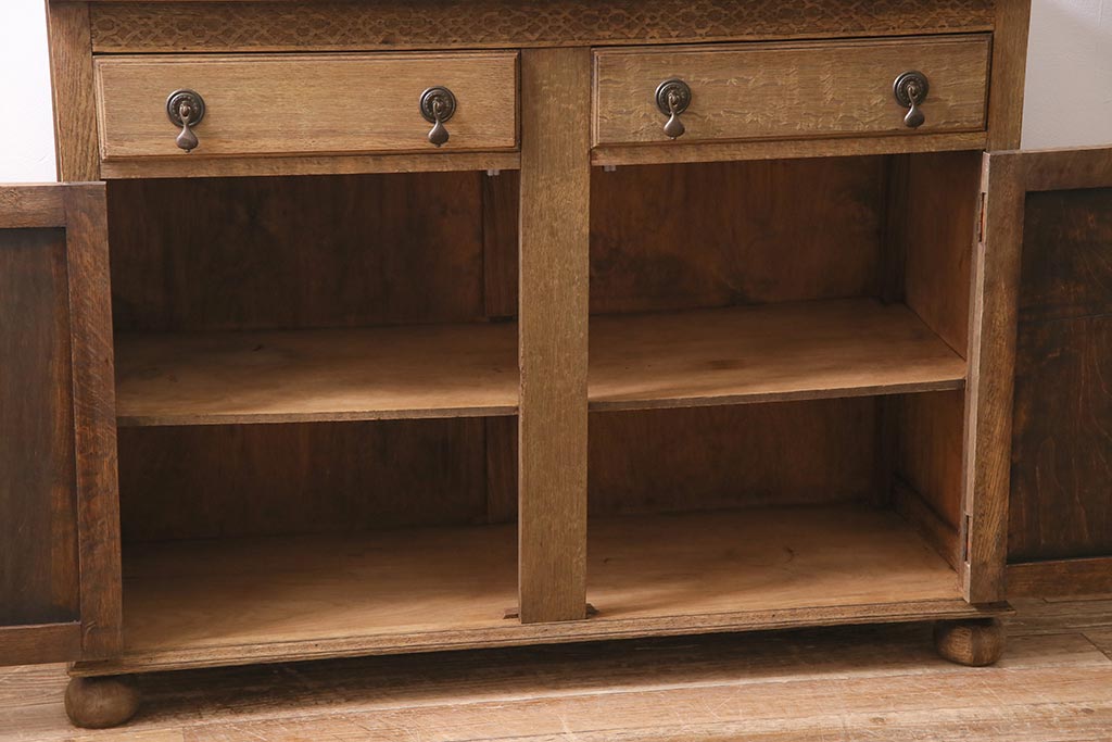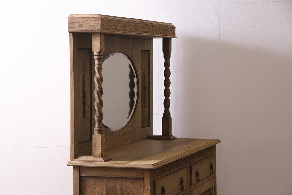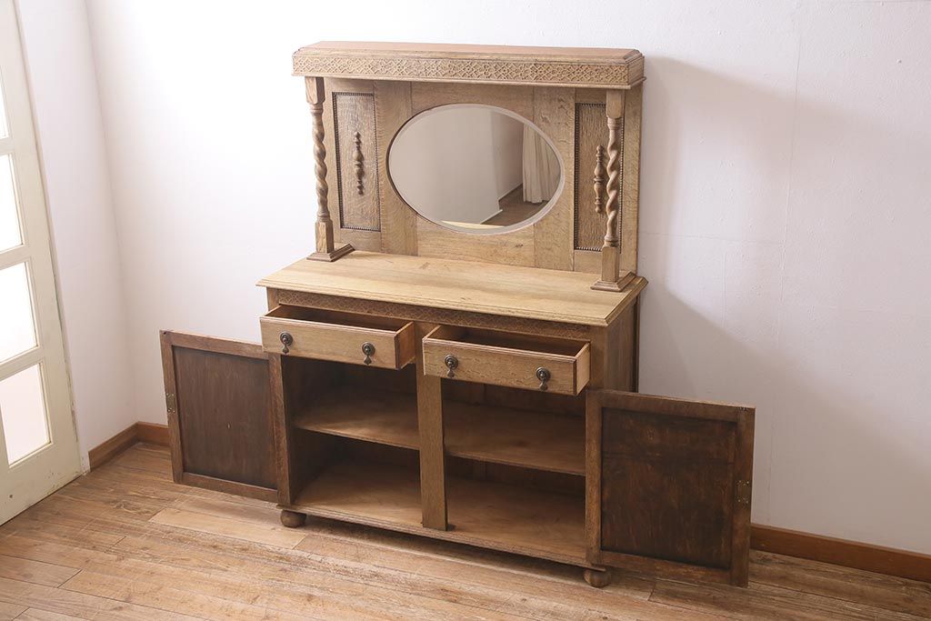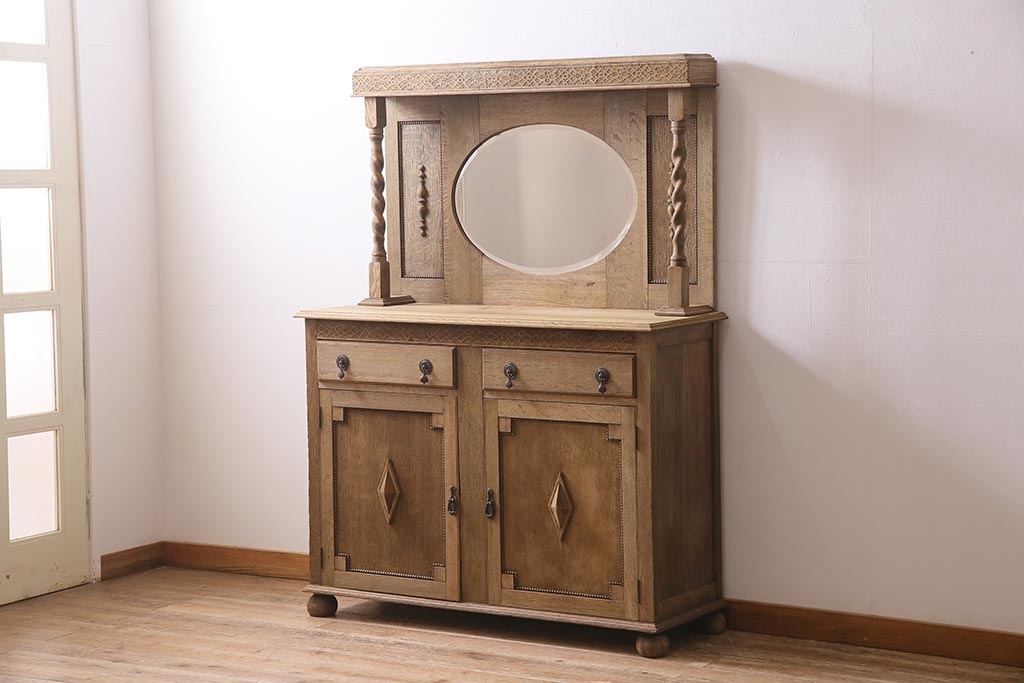 アンティーク家具 イギリスアンティーク 1910年頃 ストリップド(剥離) オーク材 鏡付き! キャビネット(サイドボード、収納棚、戸棚)(R-045505)です。