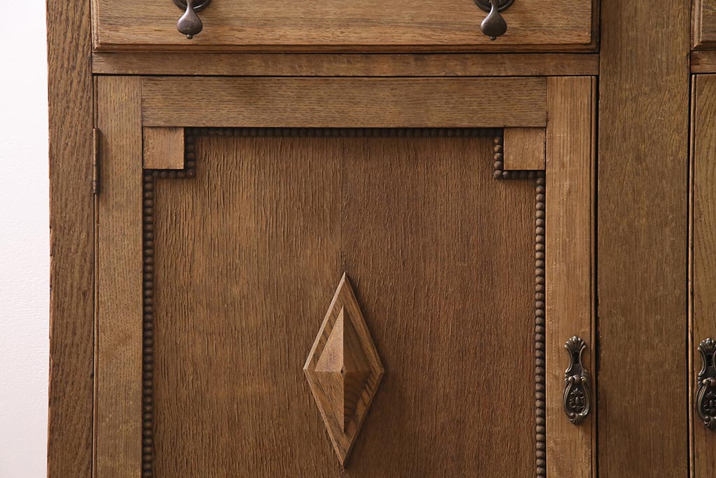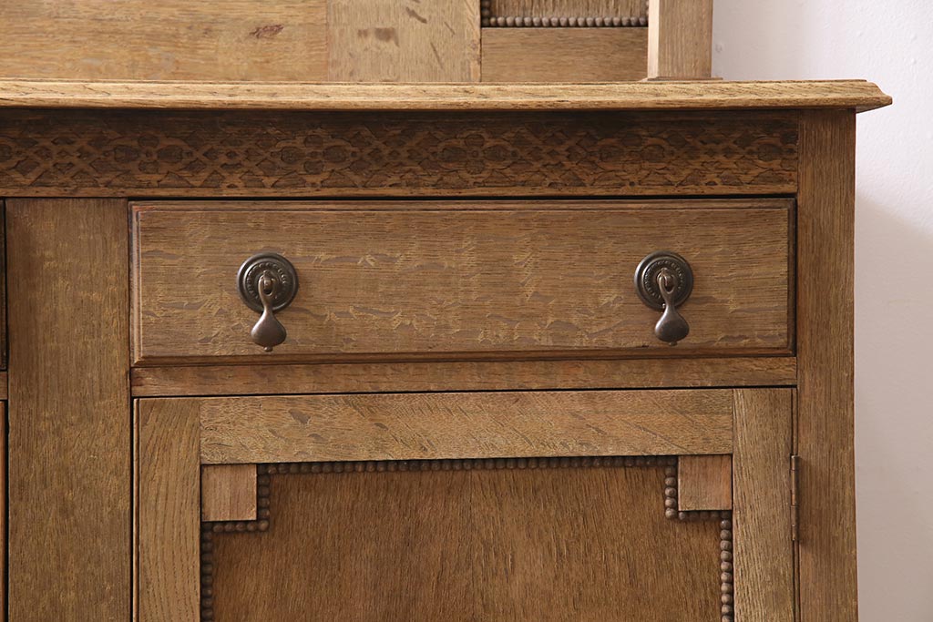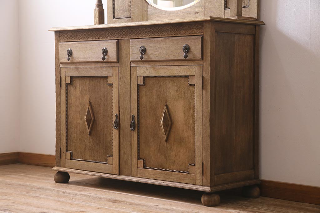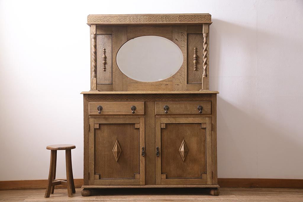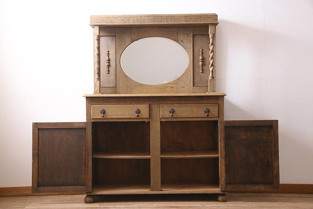 アンティーク家具 イギリスアンティーク 1910年頃 ストリップド(剥離) オーク材 鏡付き! キャビネット(サイドボード、収納棚、戸棚)(R-045505)