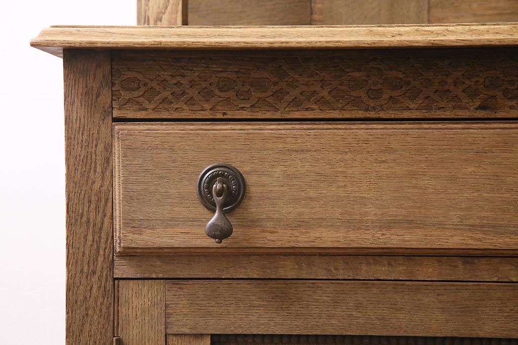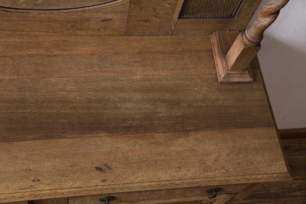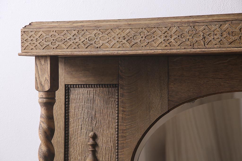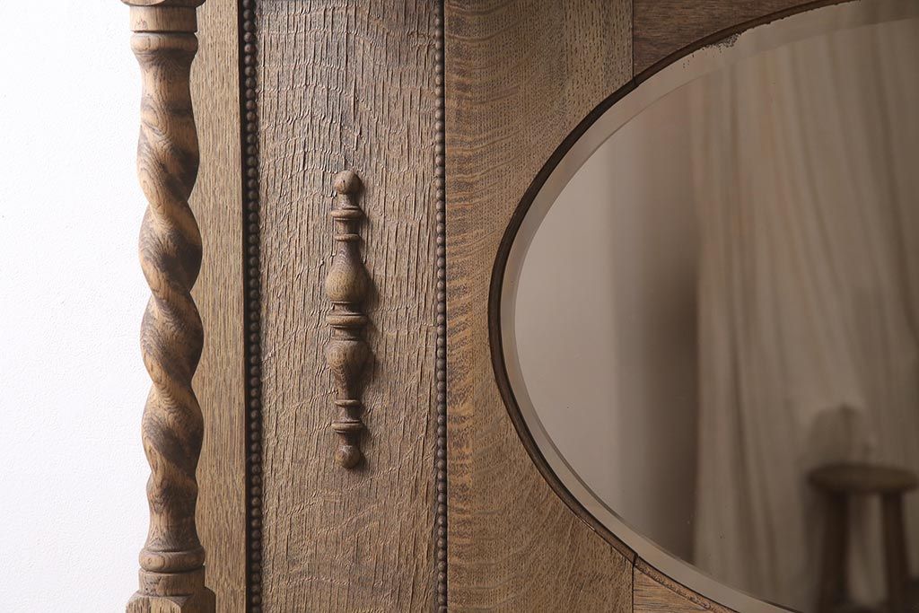 ストリップド(剥離)家具 > アンティーク家具 イギリスアンティーク 1910年頃 ストリップド(剥離) オーク材 鏡付き! キャビネット(サイドボード、収納棚、戸棚)(R-045505)