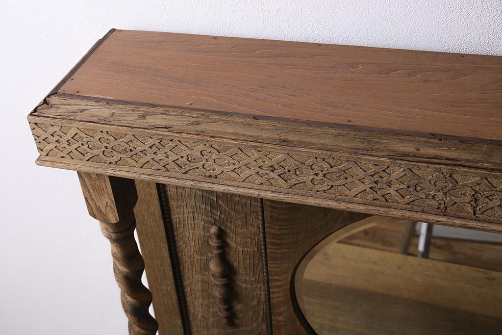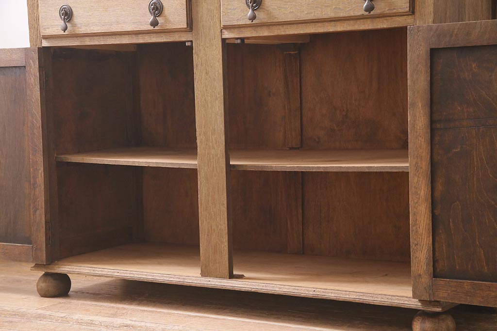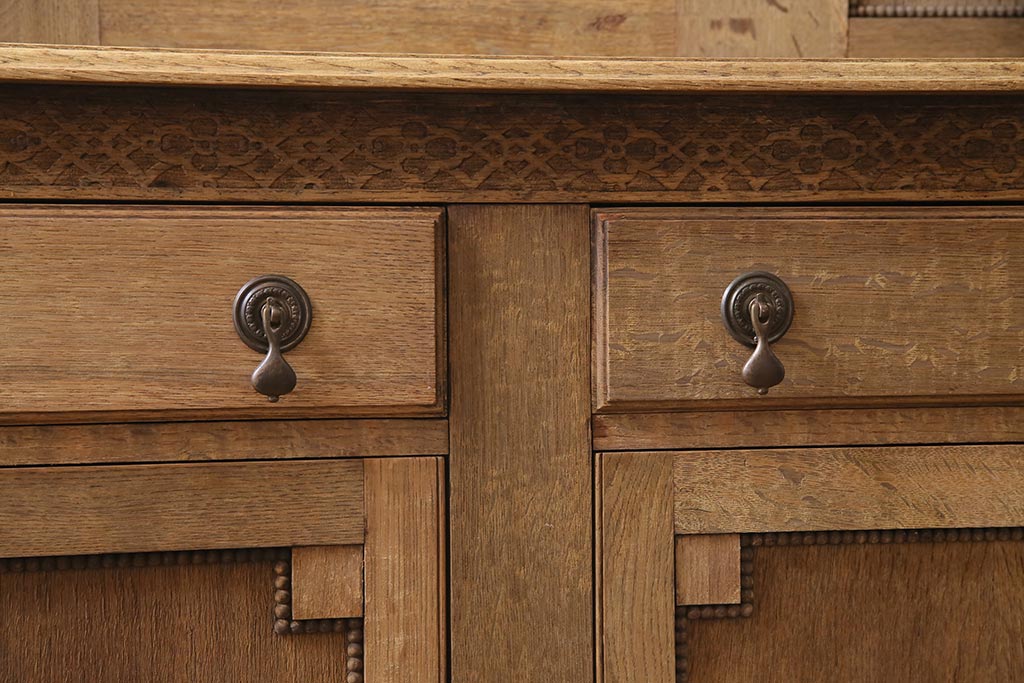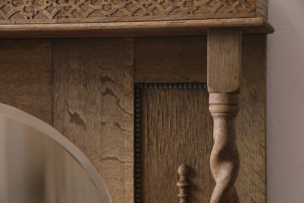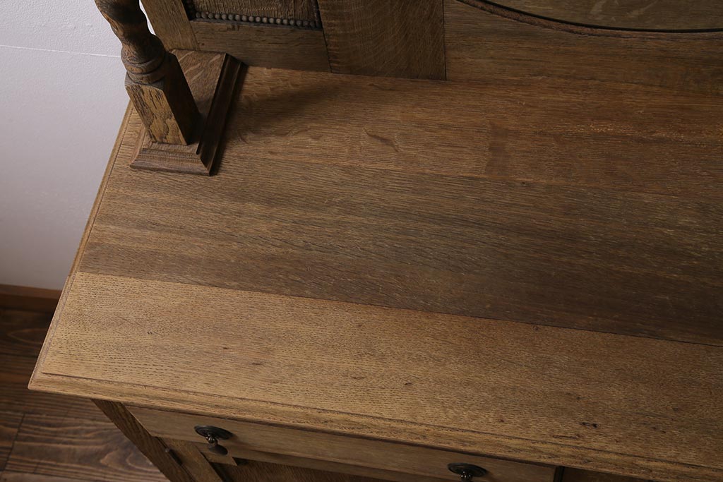 ストリップド(剥離)家具 > アンティーク家具 イギリスアンティーク 1910年頃 ストリップド(剥離) オーク材 鏡付き! キャビネット(サイドボード、収納棚、戸棚)(R-045505)