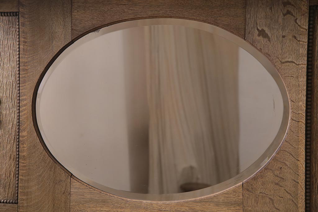 キャビネット・戸棚> サイドキャビネット > アンティーク家具 イギリスアンティーク 1910年頃 ストリップド(剥離) オーク材 鏡付き! キャビネット(サイドボード、収納棚、戸棚)(R-045505)