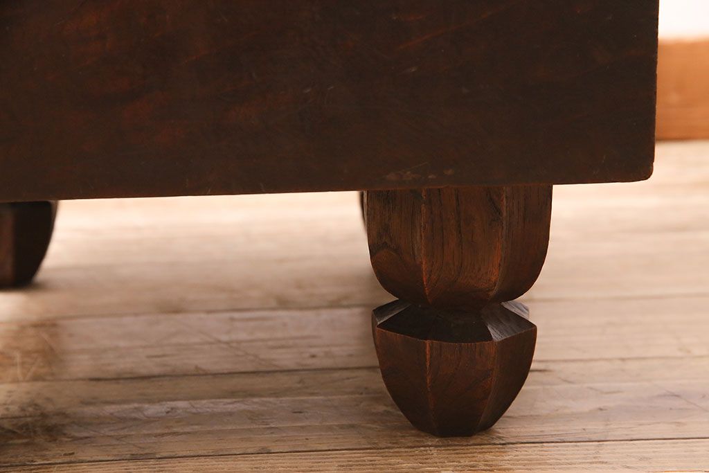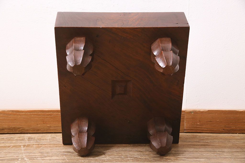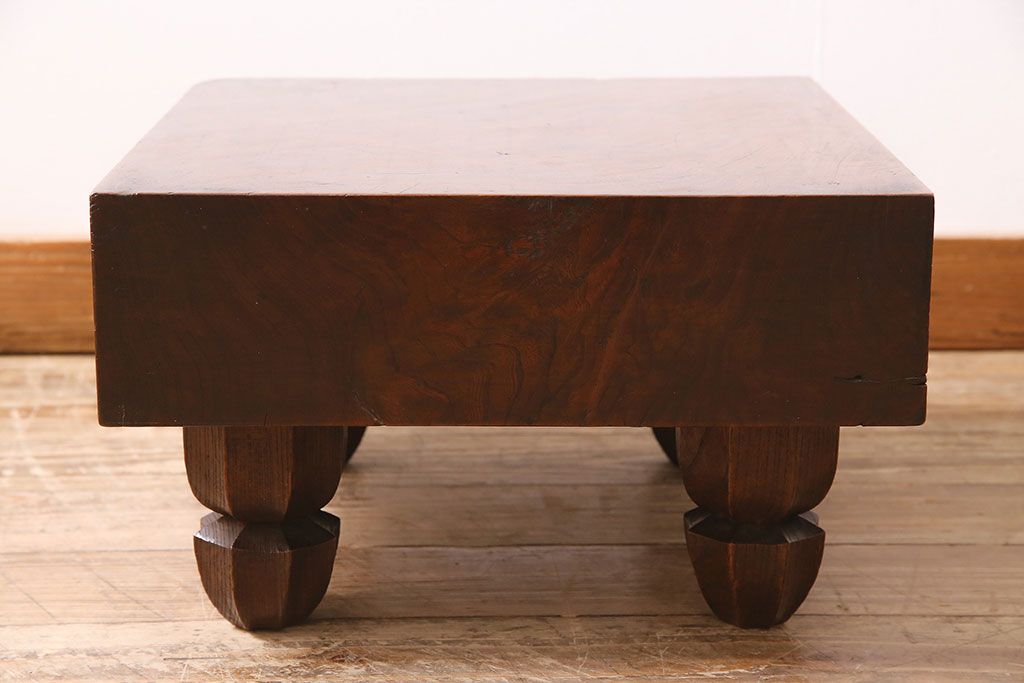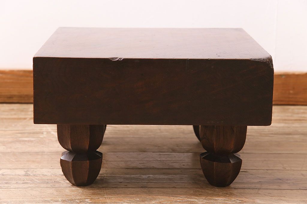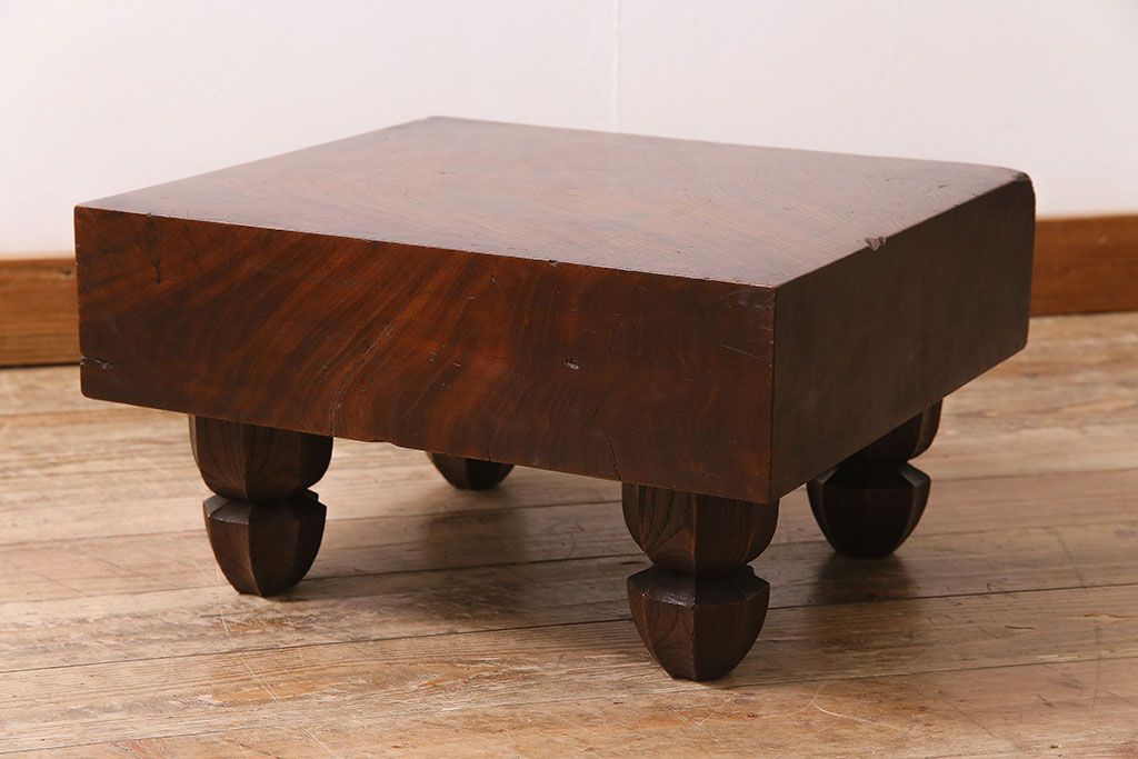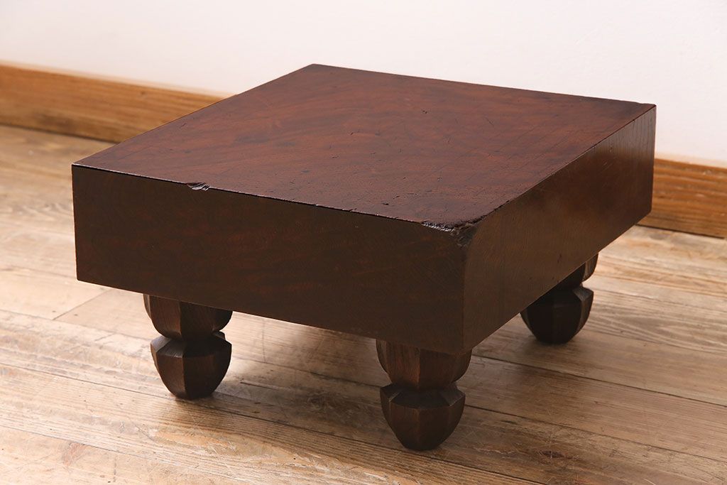 アンティーク雑貨 明治大正期 総ケヤキ材 和の趣たっぷりの足付碁盤(囲碁盤、花台、飾り台)(R-045587)