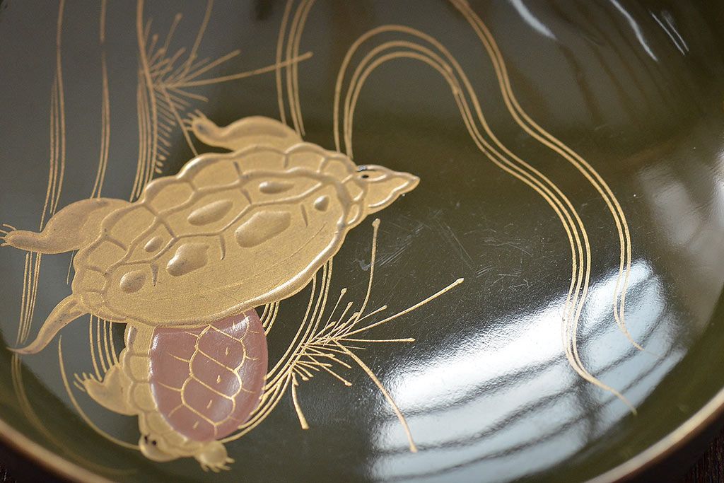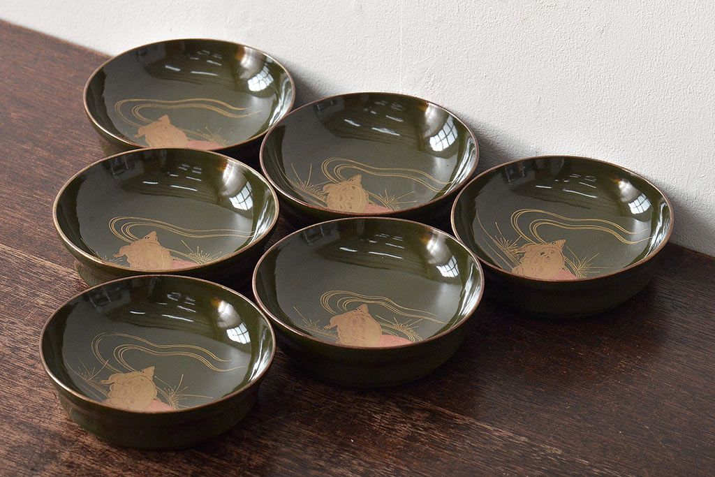 ラフジュ工房> 和食器・茶道具> 皿 > 大正〜昭和初期 亀の図 蒔絵 木皿6枚セット(漆器小皿)(R-045316)