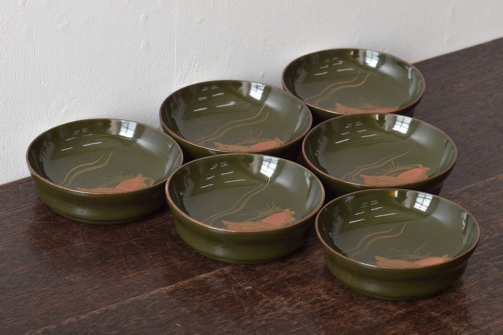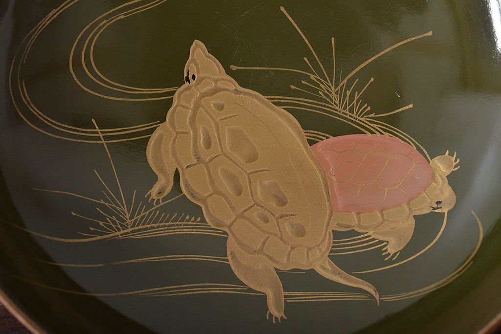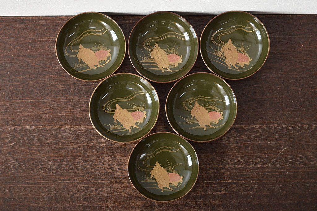大正〜昭和初期 亀の図 蒔絵 木皿6枚セット(漆器小皿)(R-045316)