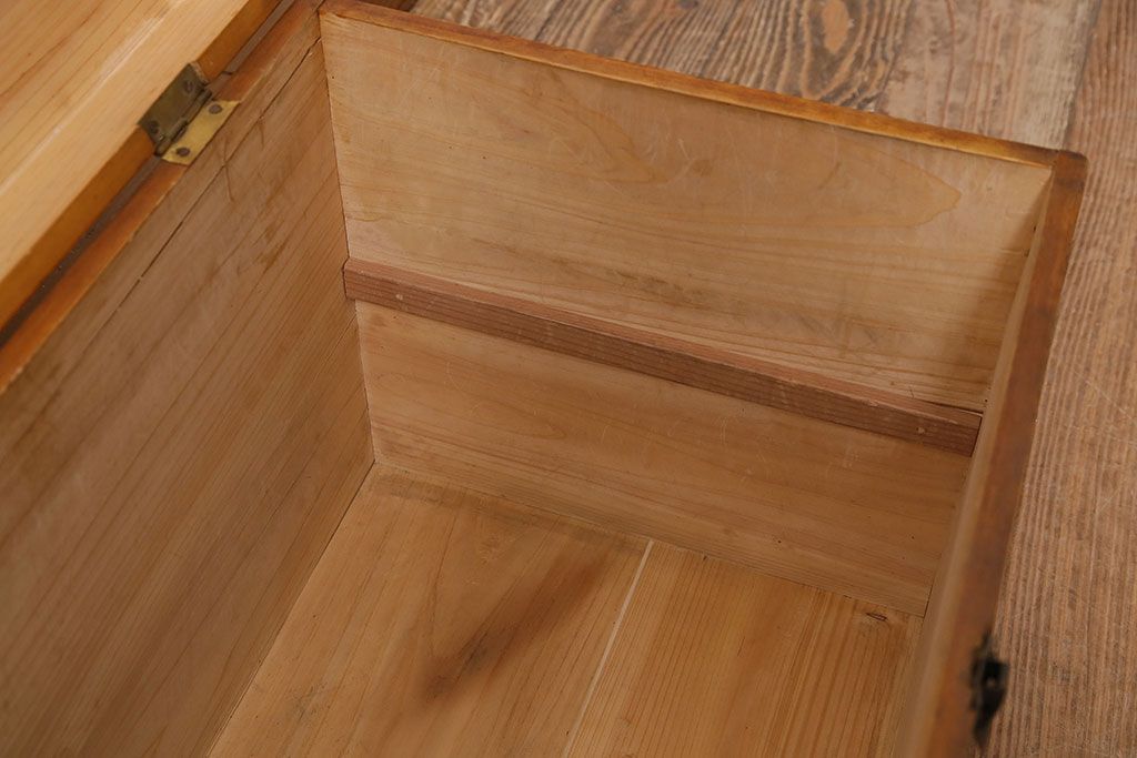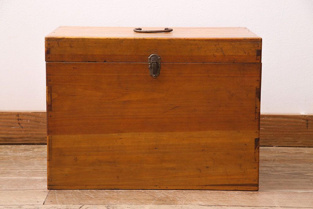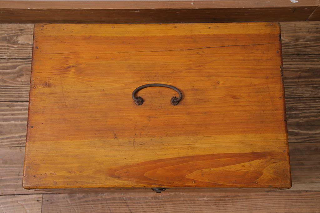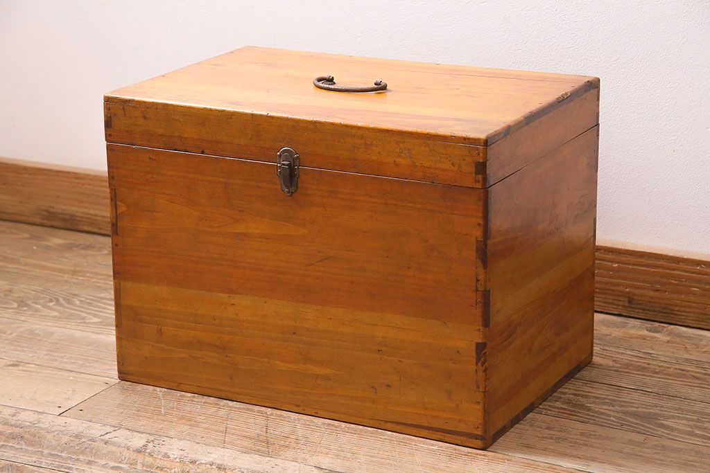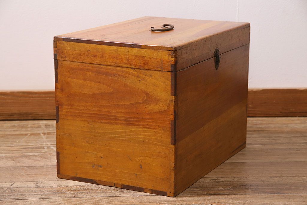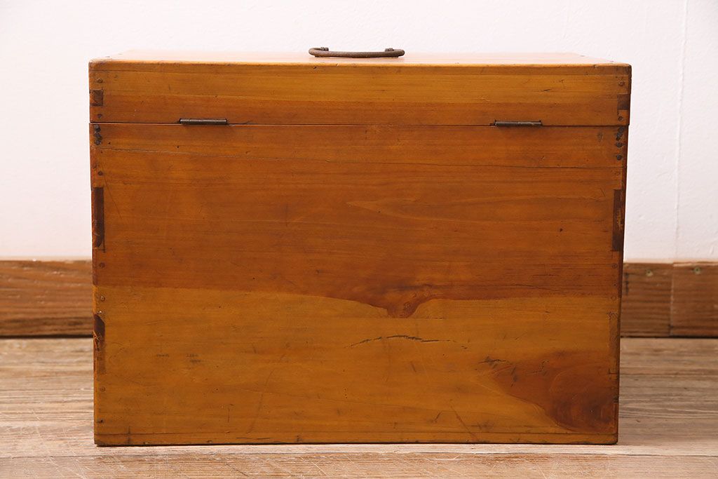 小物収納・トランク> 木箱 > アンティーク雑貨 昭和レトロ ヒノキ材 温かみのある質感が魅力の木製収納ボックス(小物入れ、収納箱、木箱)(R-045580)