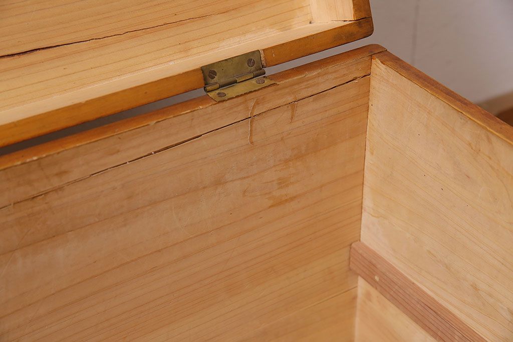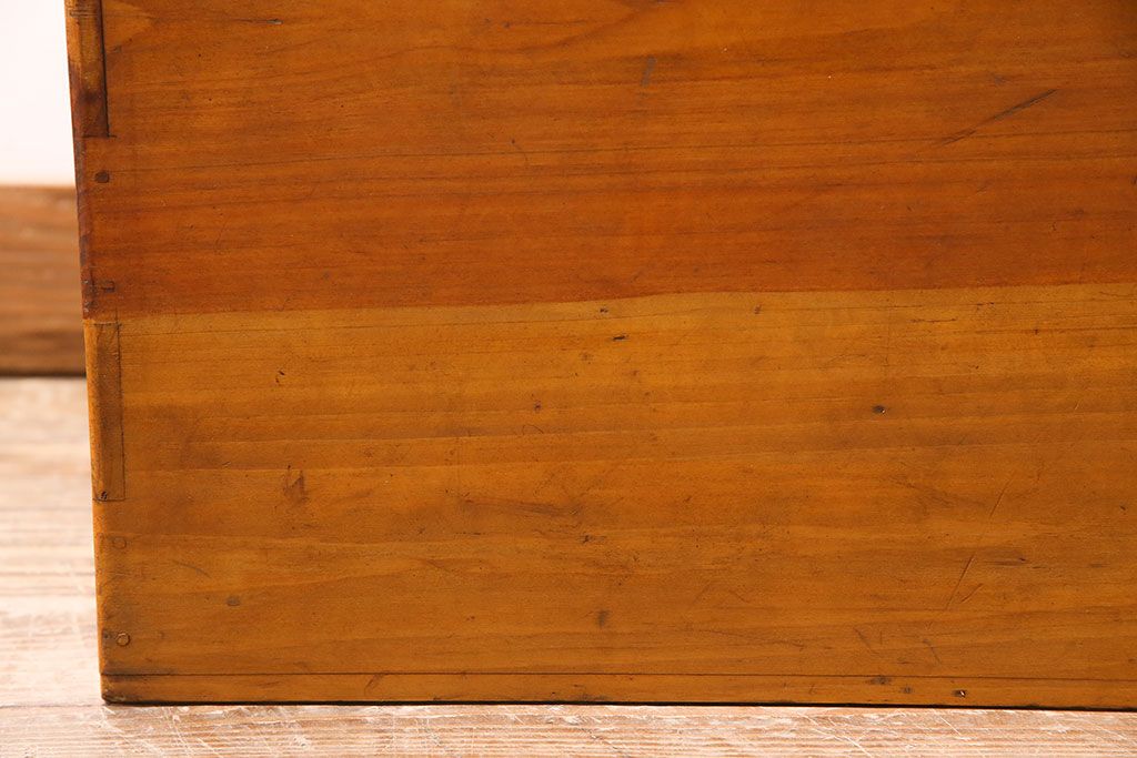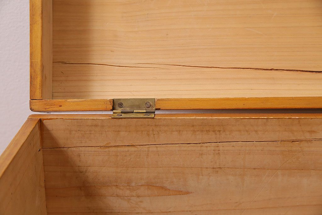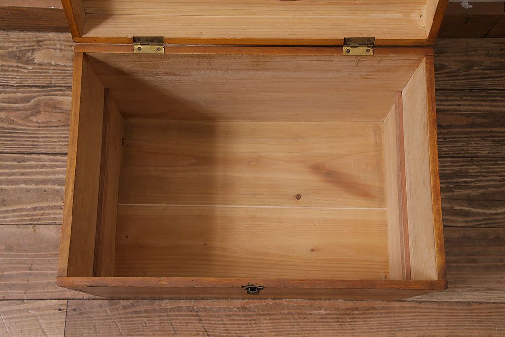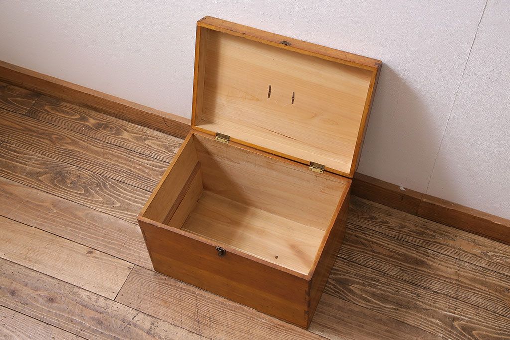 アンティーク雑貨 昭和レトロ ヒノキ材 温かみのある質感が魅力の木製収納ボックス(小物入れ、収納箱、木箱)(R-045580)