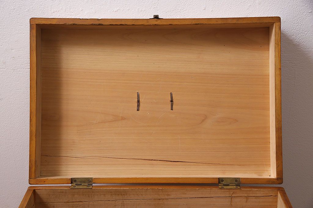 小物収納・トランク > アンティーク雑貨 昭和レトロ ヒノキ材 温かみのある質感が魅力の木製収納ボックス(小物入れ、収納箱、木箱)(R-045580)