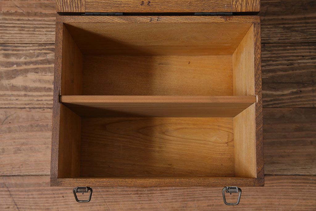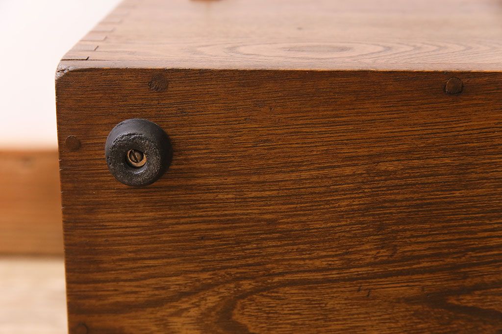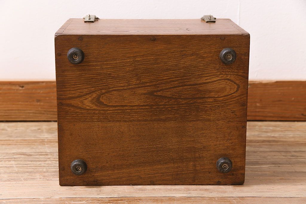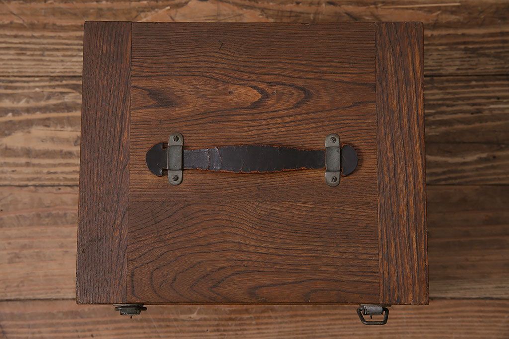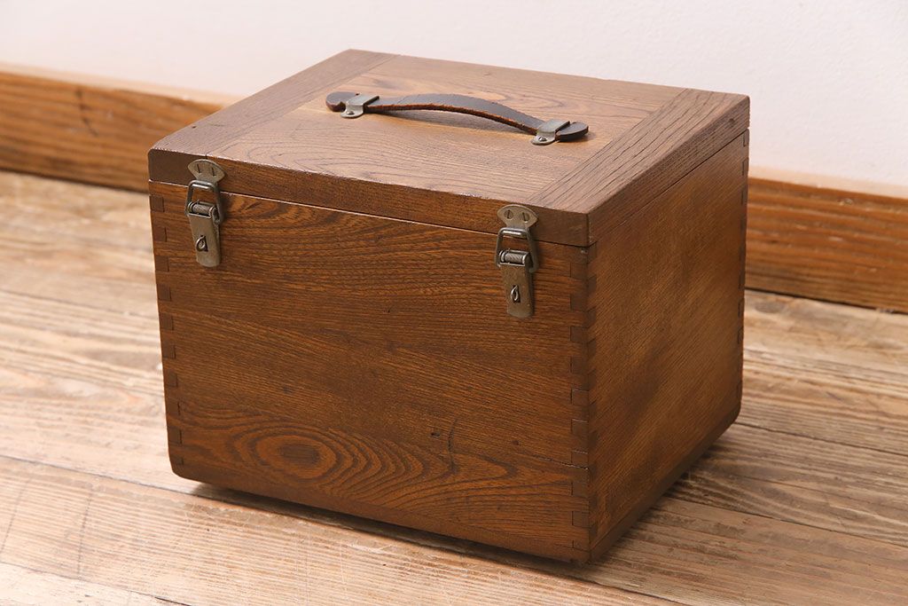 アンティーク雑貨 和製 昭和初期 栓材 くっきりとした木目が魅力の持ち手付き木製収納箱(収納ボックス、小物収納箱)(R-045568)