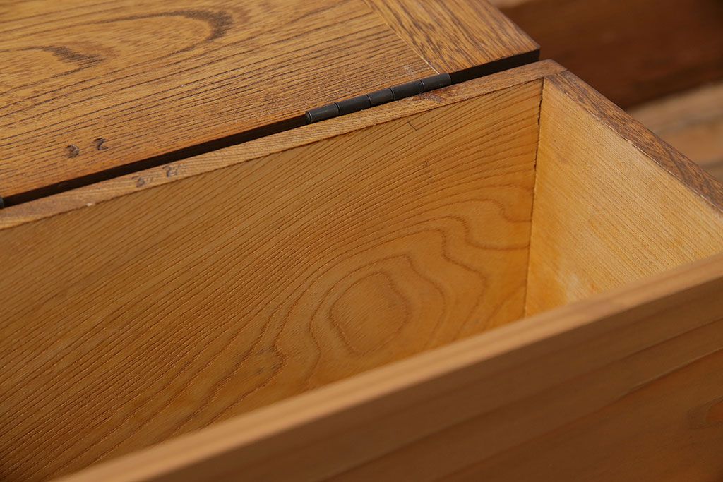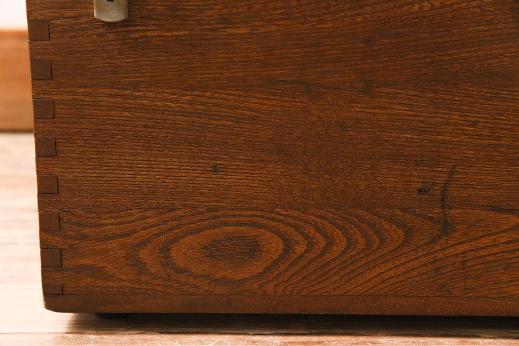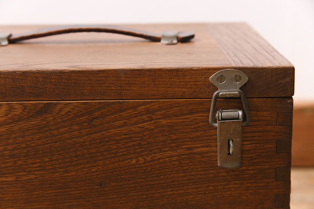 小物収納・トランク> 木箱 > アンティーク雑貨 和製 昭和初期 栓材 くっきりとした木目が魅力の持ち手付き木製収納箱(収納ボックス、小物収納箱)(R-045568)