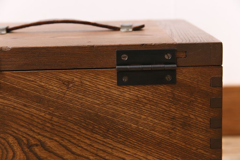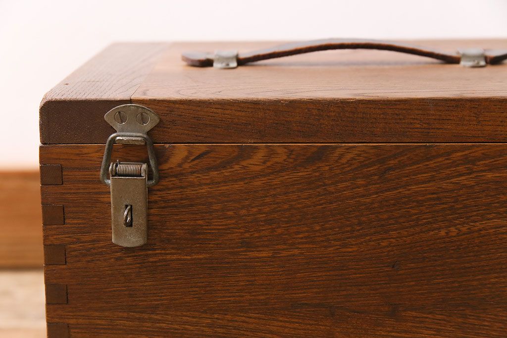 小物収納・トランク > アンティーク雑貨 和製 昭和初期 栓材 くっきりとした木目が魅力の持ち手付き木製収納箱(収納ボックス、小物収納箱)(R-045568)