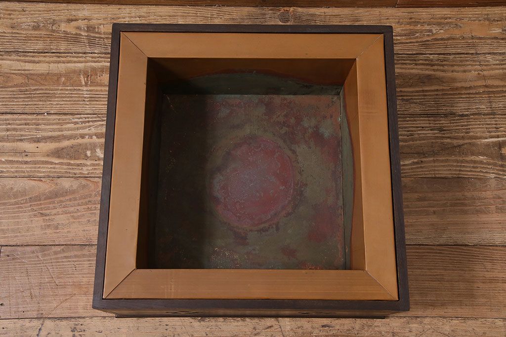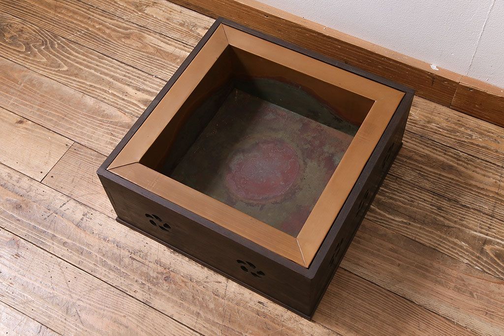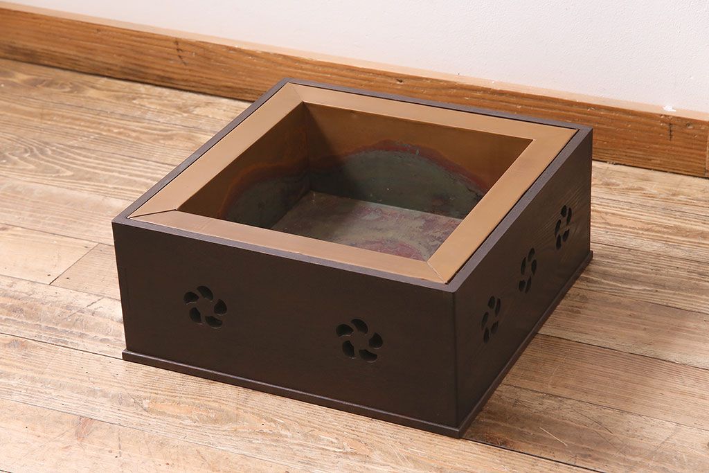 アンティーク雑貨 昭和中期 桑材 透かし彫り入りの小さな角火鉢(木製火鉢、箱火鉢)(R-045567)です。