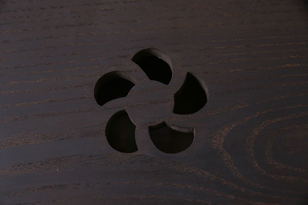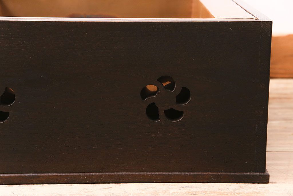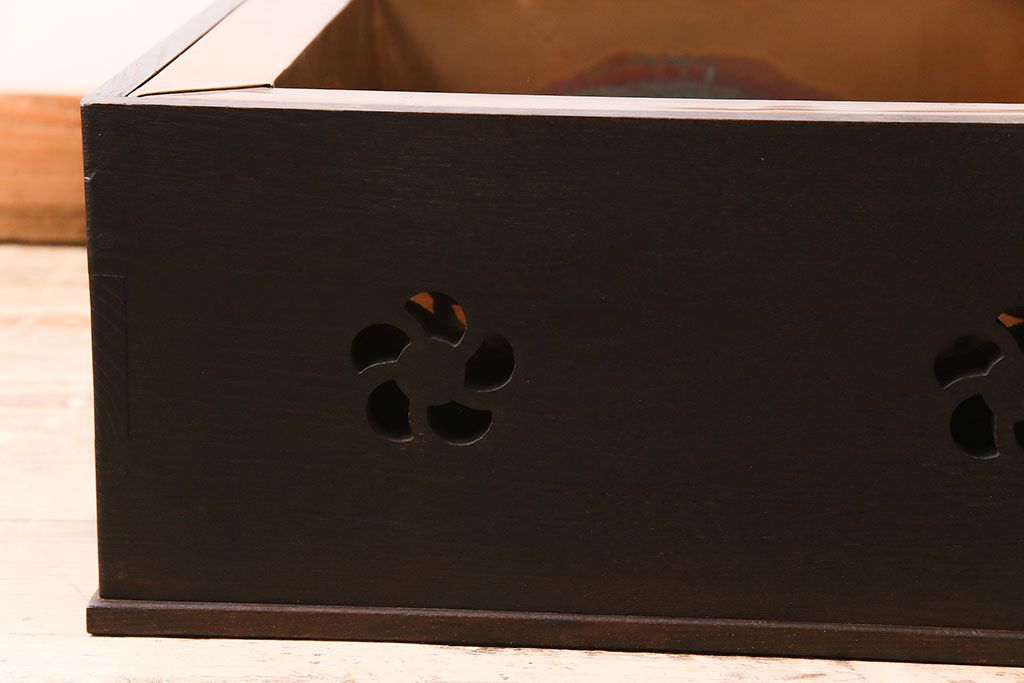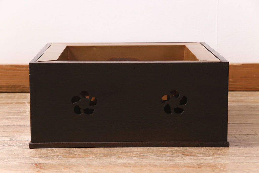 火鉢> 木製火鉢 > アンティーク雑貨 昭和中期 桑材 透かし彫り入りの小さな角火鉢(木製火鉢、箱火鉢)(R-045567)