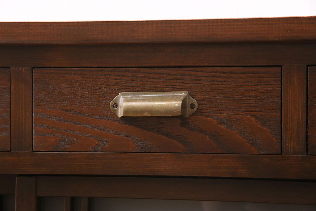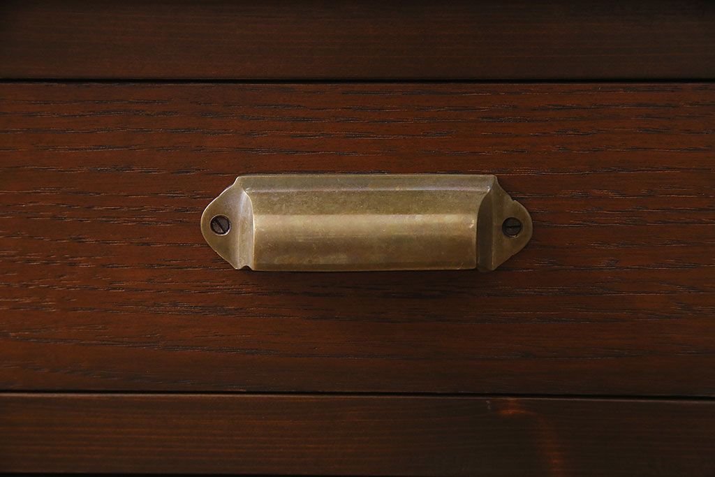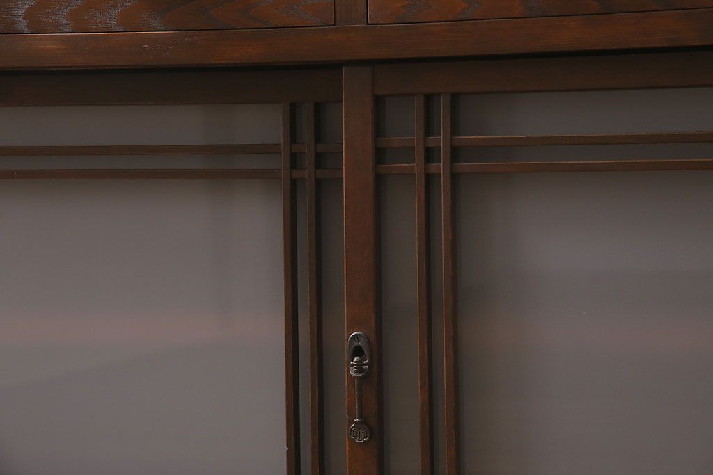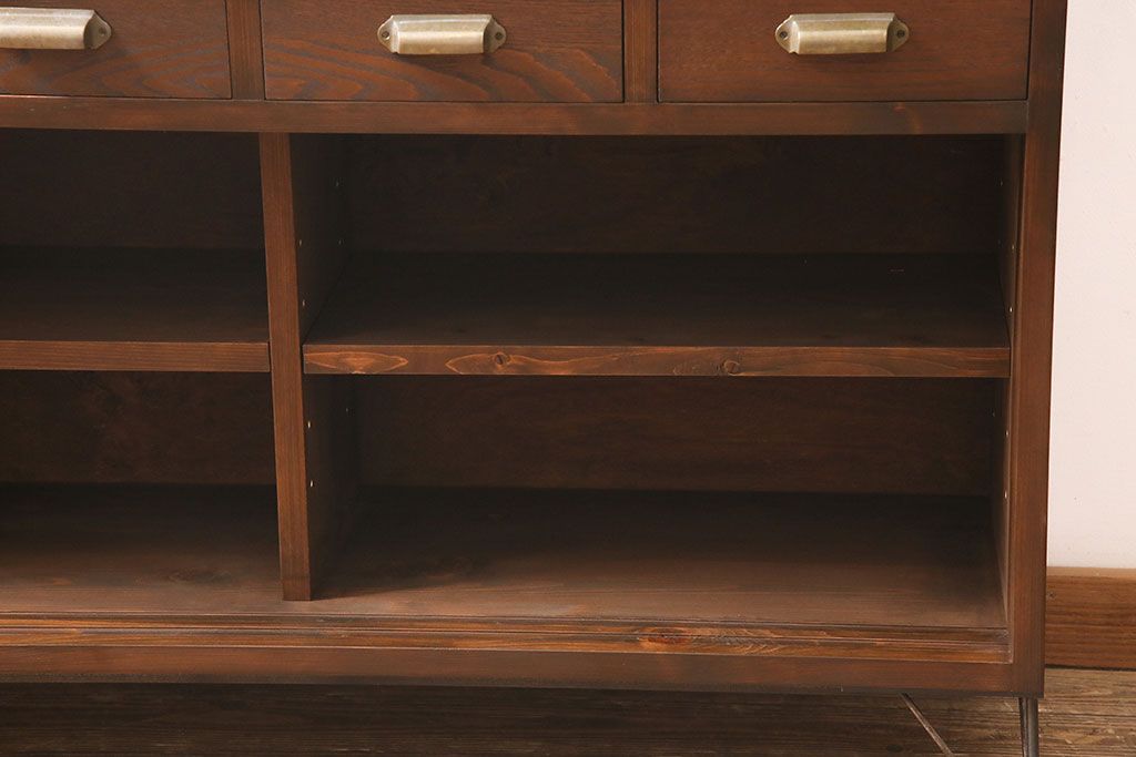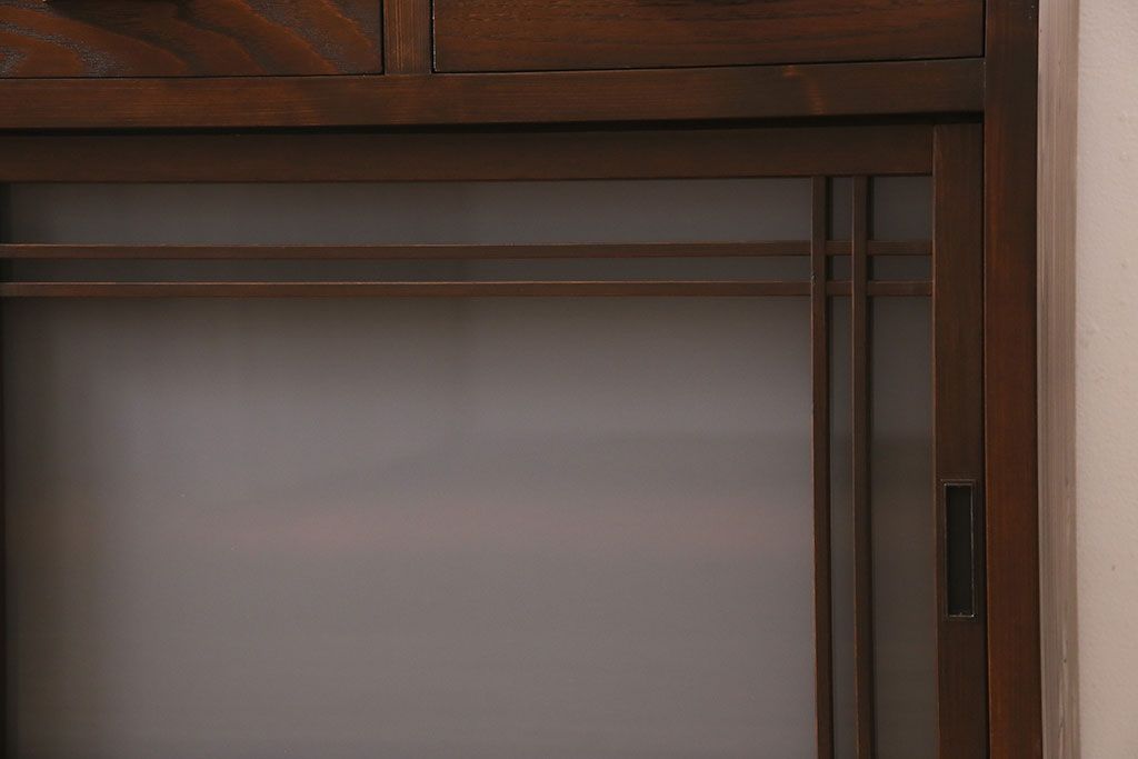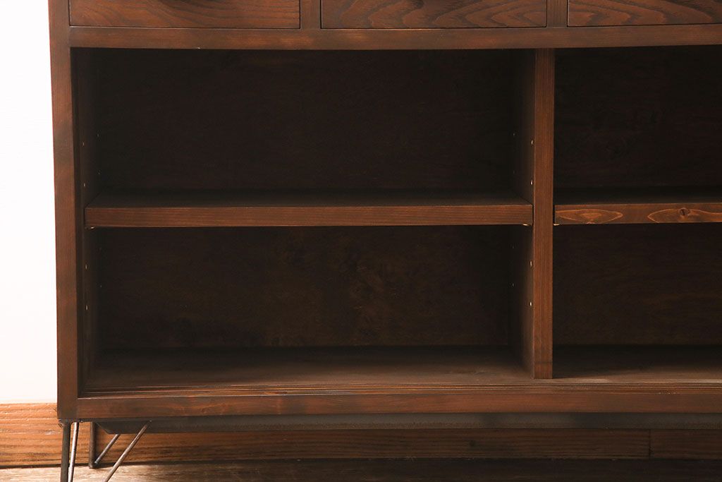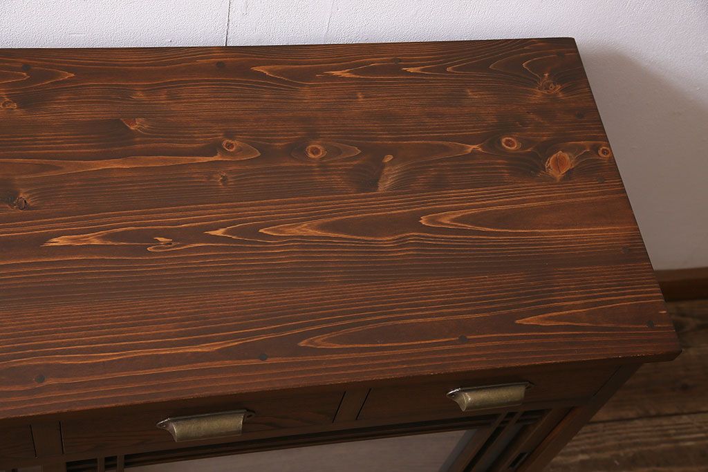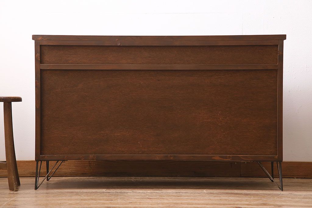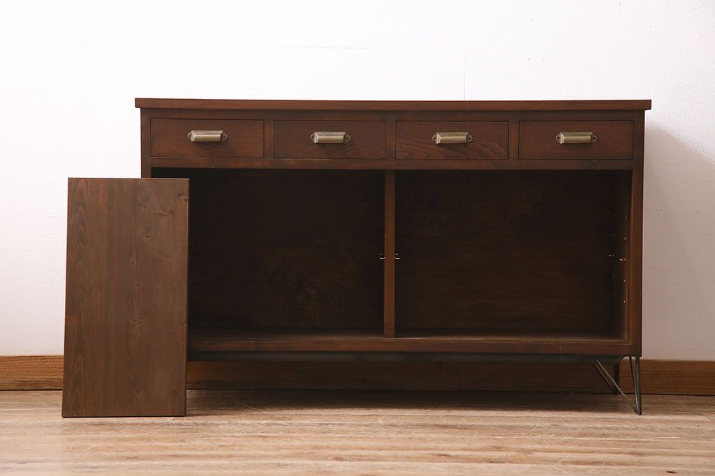 ラフジュ工房オリジナル 昭和初期 古建具リメイク すりガラス 引き出し付き レトロな雰囲気の鉄脚付リビングボード(収納棚、戸棚、テレビ台、キャビネット)(R-045581)