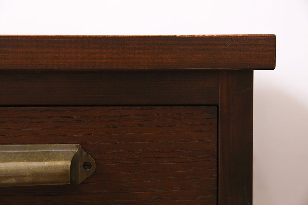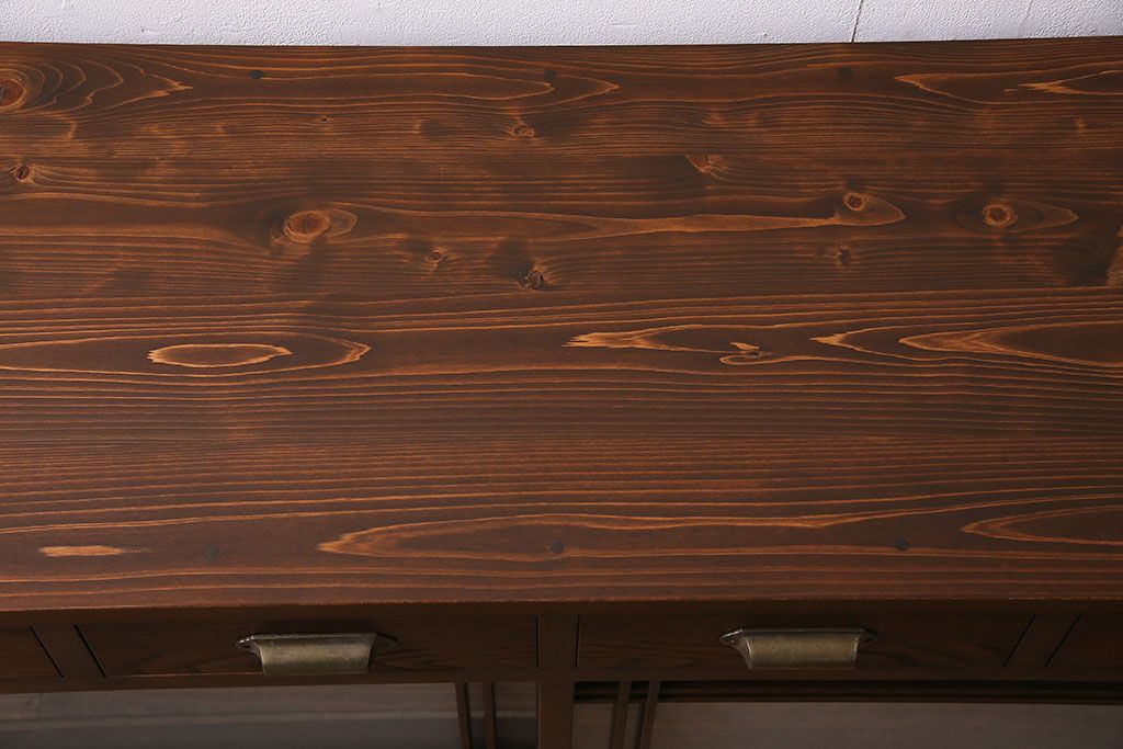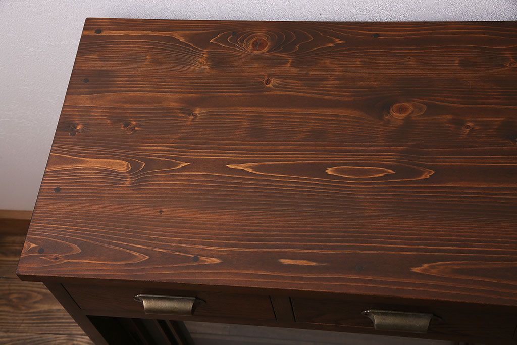 ラフジュ工房オリジナル 昭和初期 古建具リメイク すりガラス 引き出し付き レトロな雰囲気の鉄脚付リビングボード(収納棚、戸棚、テレビ台、キャビネット)(R-045581)です。