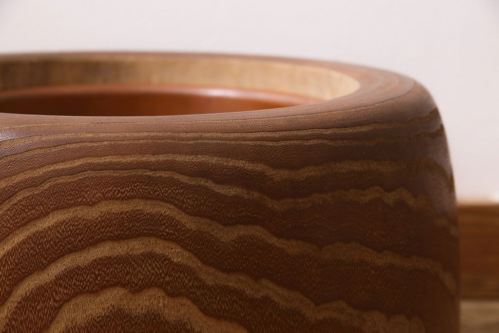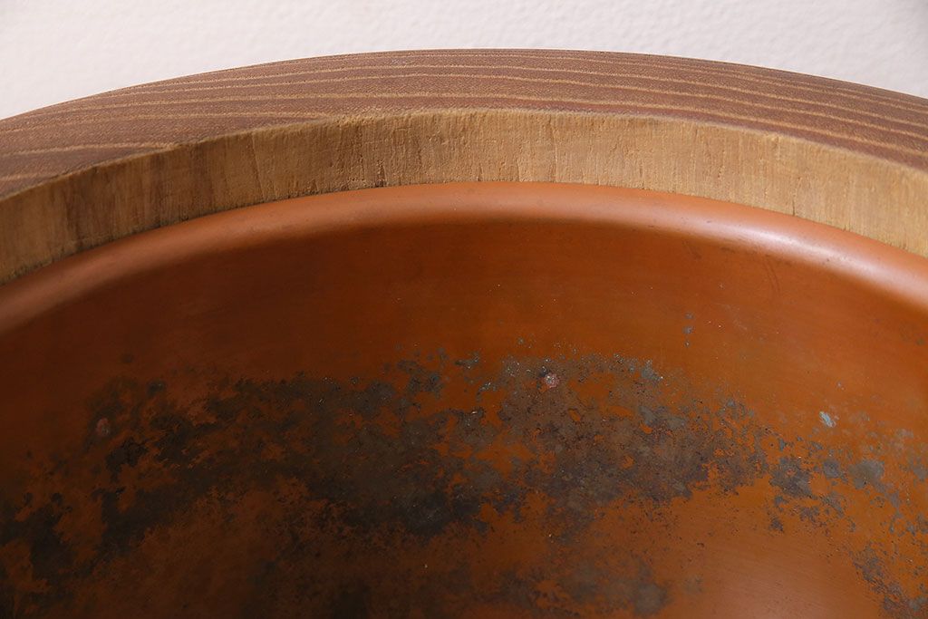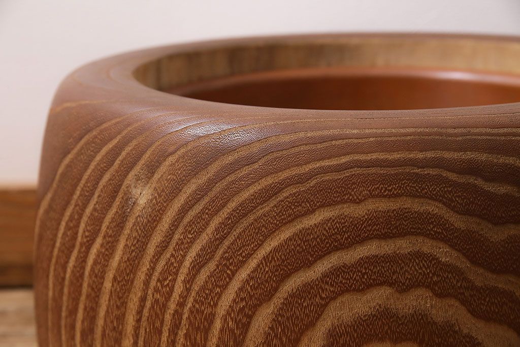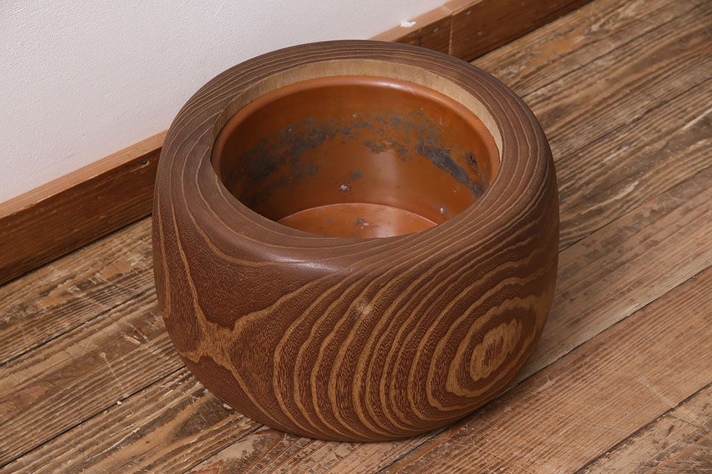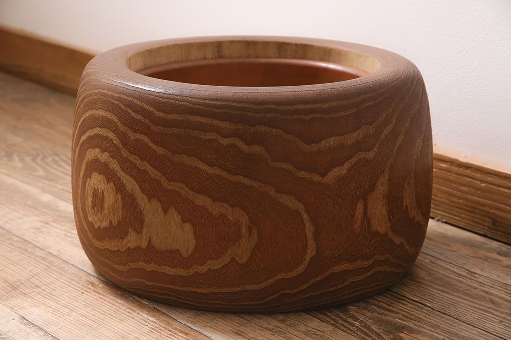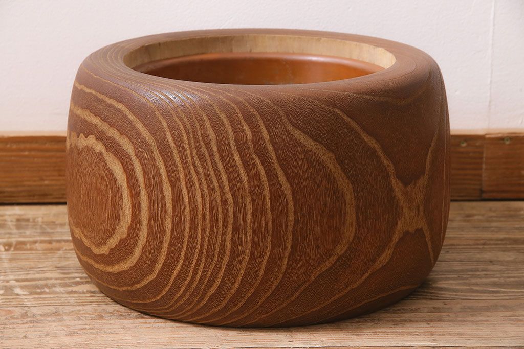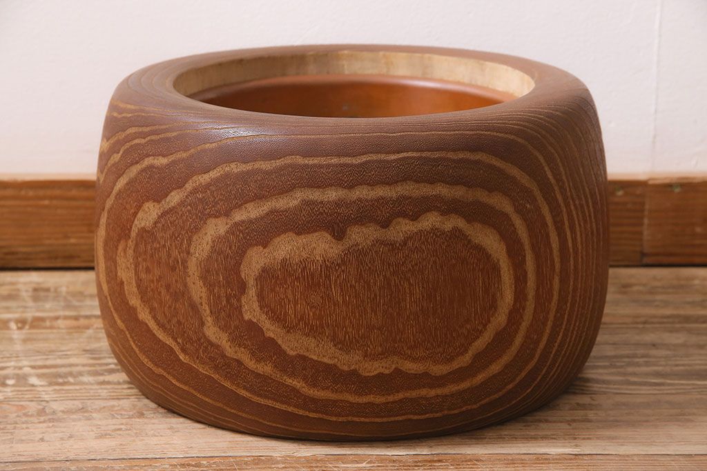 火鉢> 木製火鉢 > アンティーク雑貨 昭和初期 大胆な杢目が目を引く桐火鉢(木製火鉢、手あぶり)(R-045586)