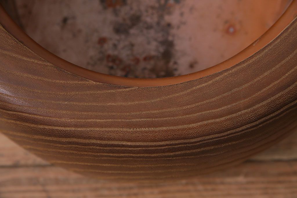 アンティーク雑貨 昭和初期 大胆な杢目が目を引く桐火鉢(木製火鉢、手あぶり)(R-045586)