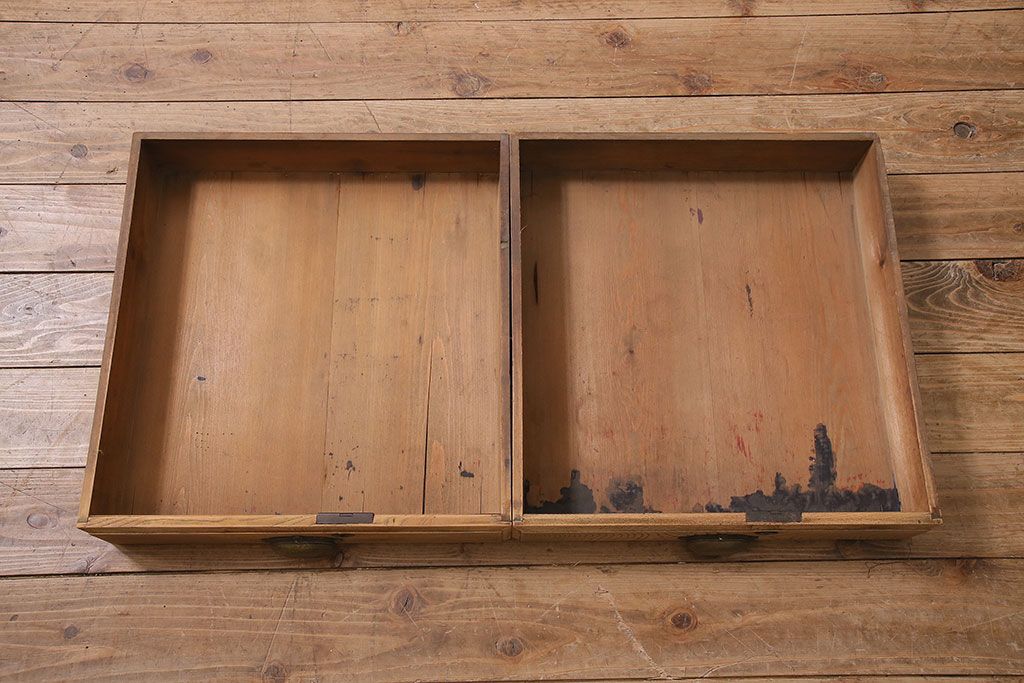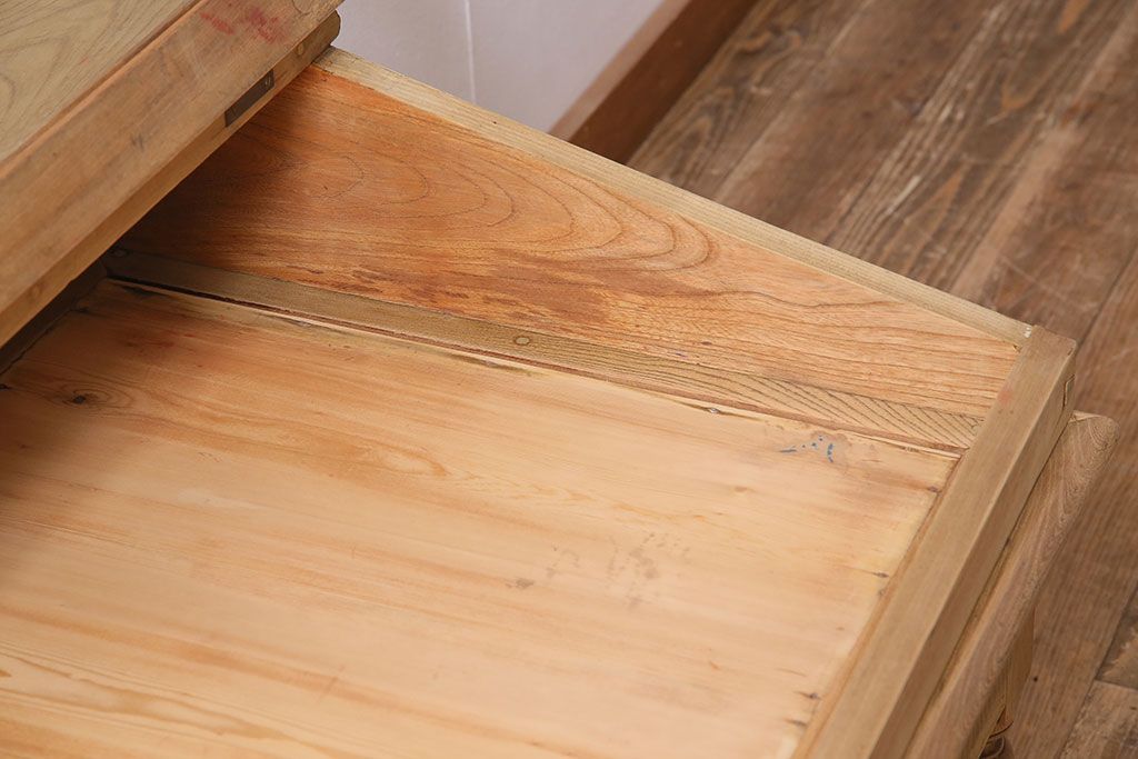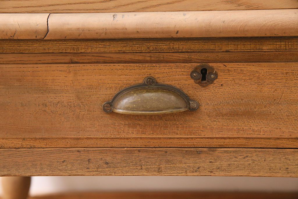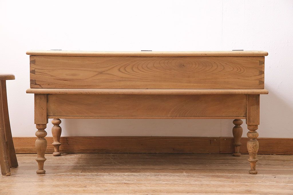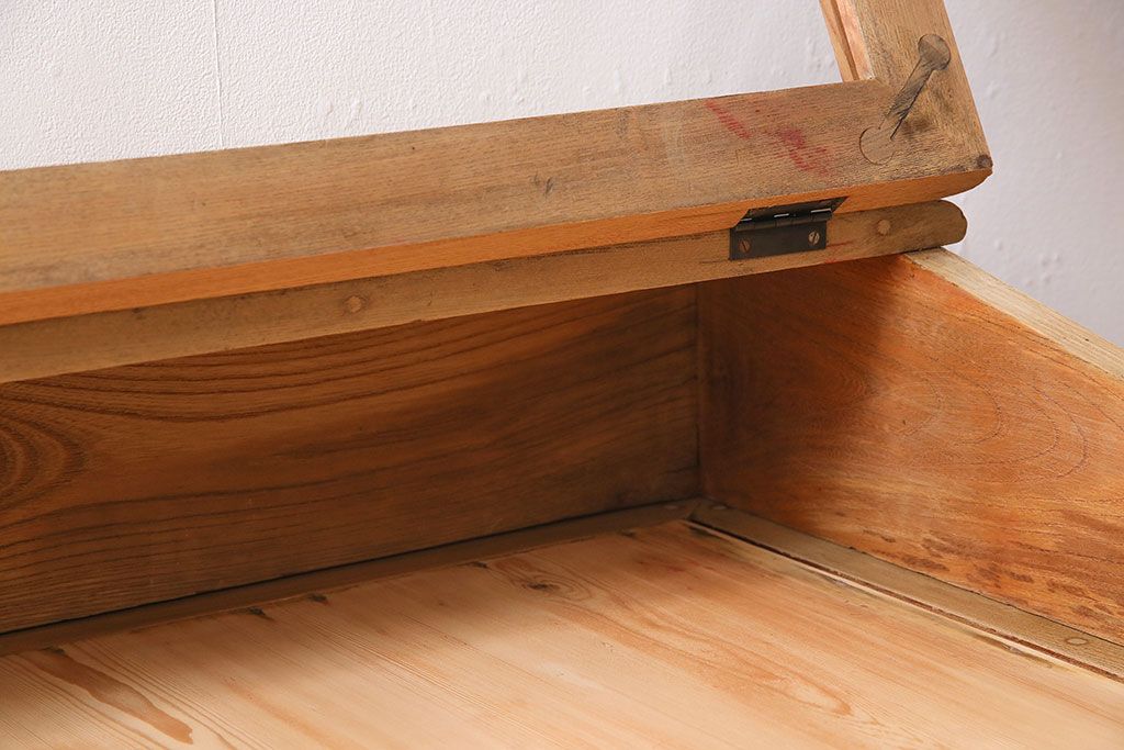 店舗什器 > アンティーク家具 大正昭和初期 ストリップド(剥離) 総ケヤキ材・内部ヒノキ材 文机型のショーケース(コレクションケース、ライティングデスク、在宅ワーク、在宅用簿記机)(R-045639)