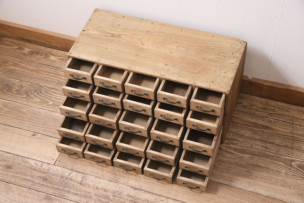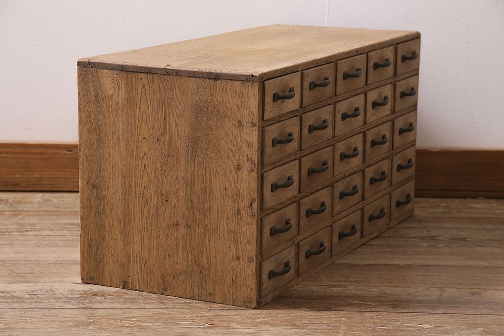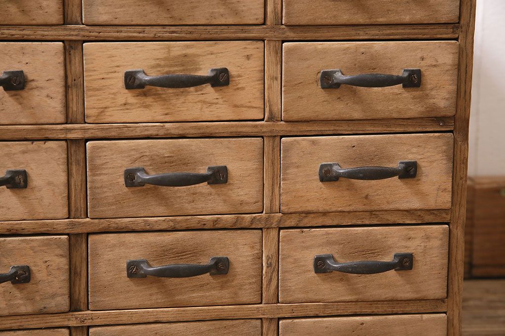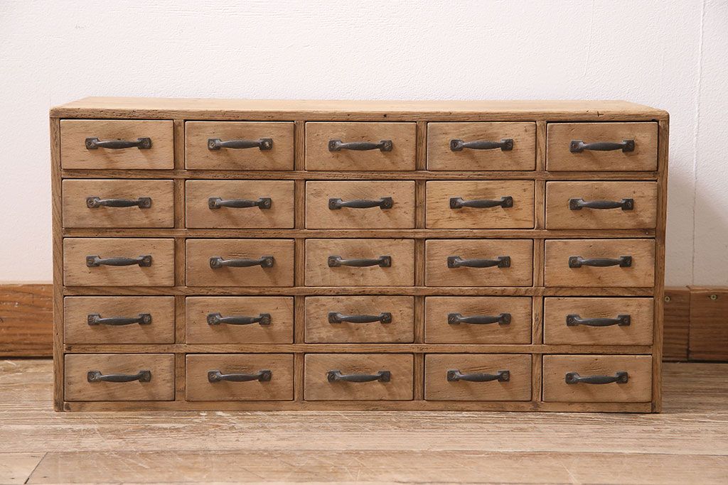 ストリップド(剥離)家具 > アンティーク家具 昭和初期 ストリップド(剥離) 栓材・ブナ材 引き出し25杯 小物の整理に活躍するレトロな小引き出し(引き出し、チェスト)(R-039106)