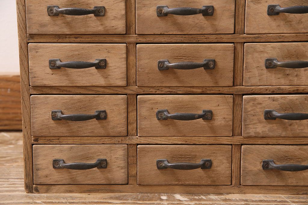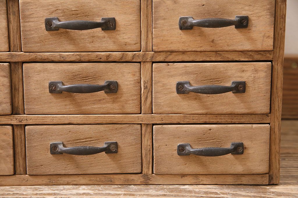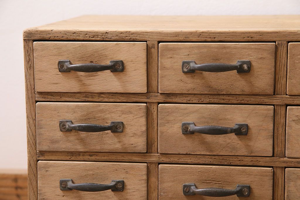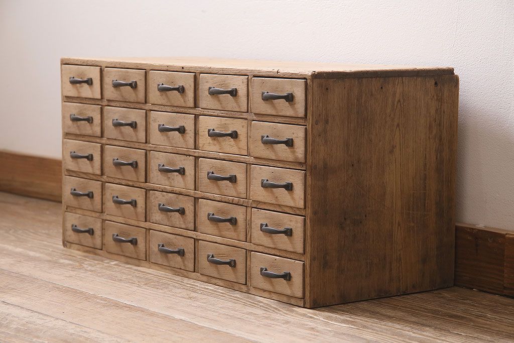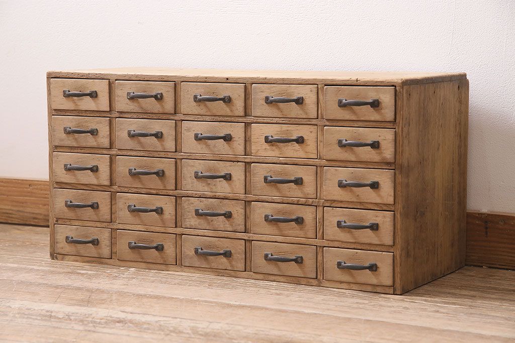 ストリップド(剥離)家具 > アンティーク家具 昭和初期 ストリップド(剥離) 栓材・ブナ材 引き出し25杯 小物の整理に活躍するレトロな小引き出し(引き出し、チェスト)(R-039106)