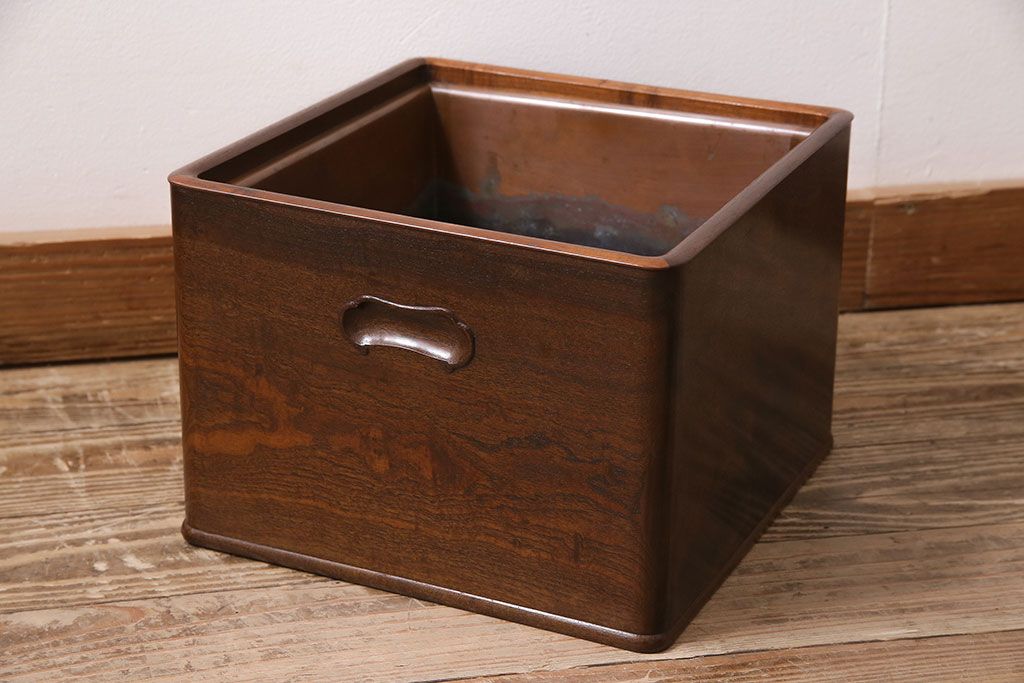 アンティーク雑貨 昭和初期 指物家具 桑材 美しい木目の角火鉢(木製火鉢、箱火鉢)(R-045621)です。