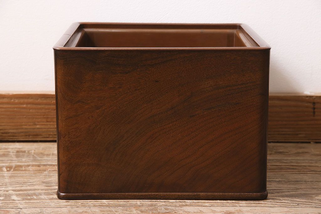 火鉢> 木製火鉢 > アンティーク雑貨 昭和初期 指物家具 桑材 美しい木目の角火鉢(木製火鉢、箱火鉢)(R-045621)
