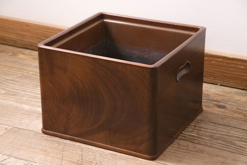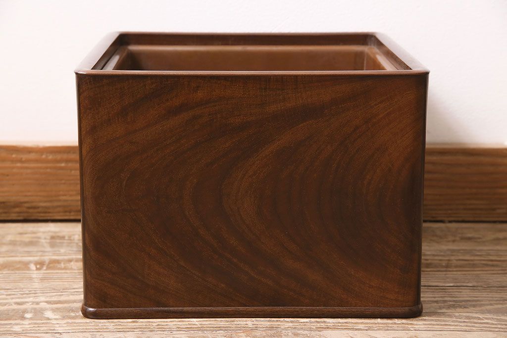 火鉢> 木製火鉢 > アンティーク雑貨 昭和初期 指物家具 桑材 美しい木目の角火鉢(木製火鉢、箱火鉢)(R-045620)