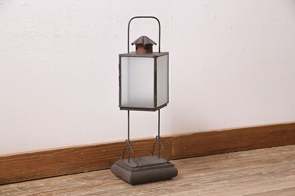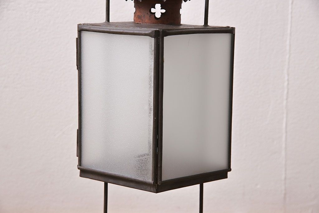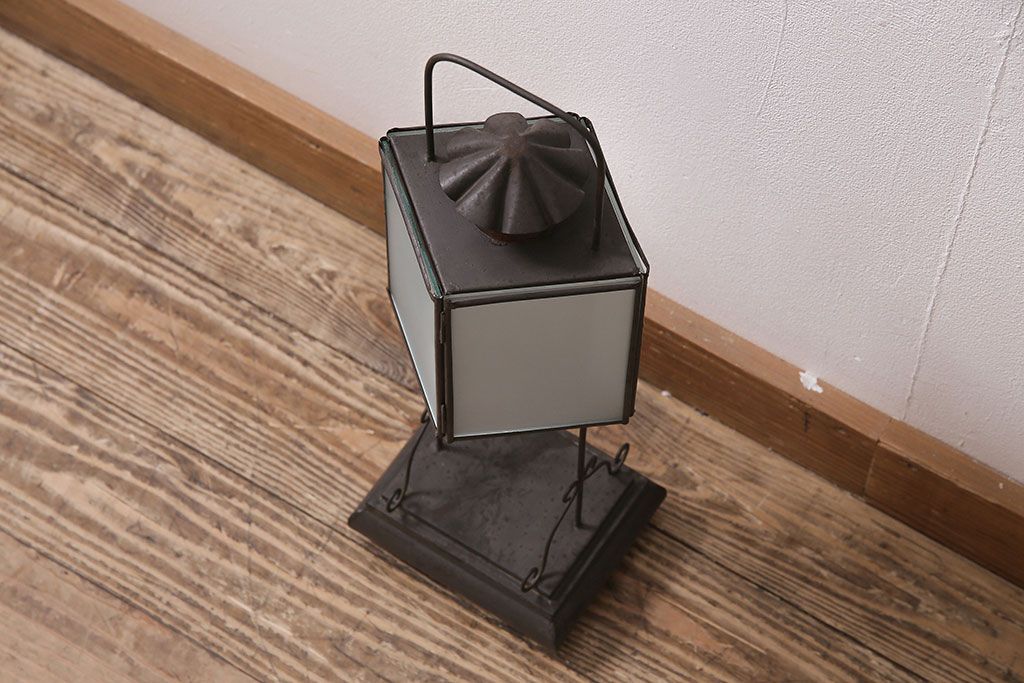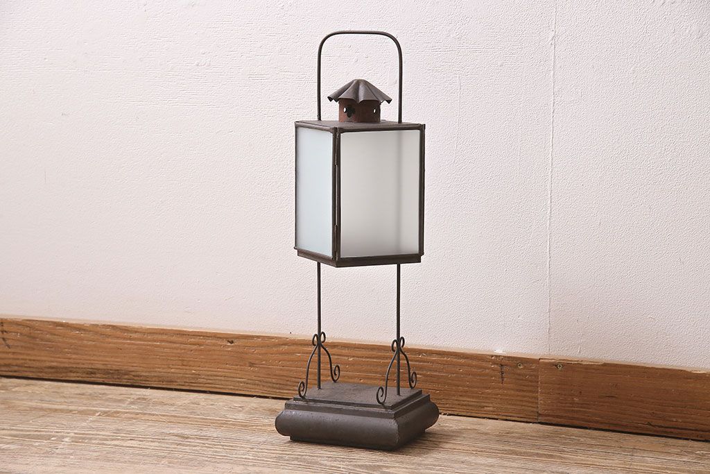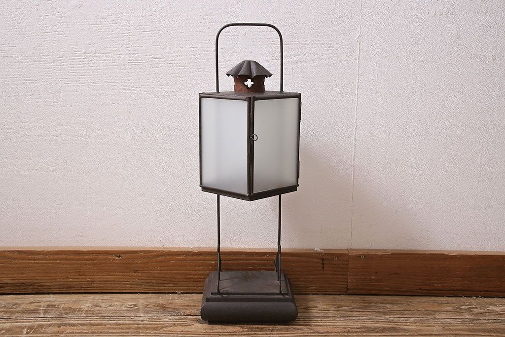 アンティーク雑貨 古民具 大正期 すりガラス入り 鉄製の行灯(行燈、照明、スタンド)(R-045660)