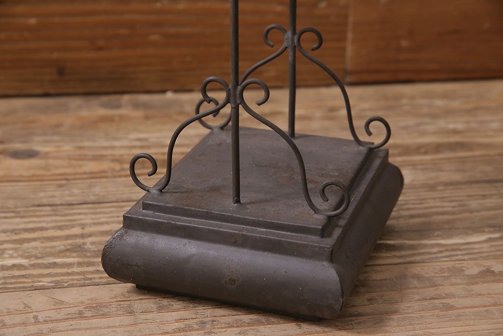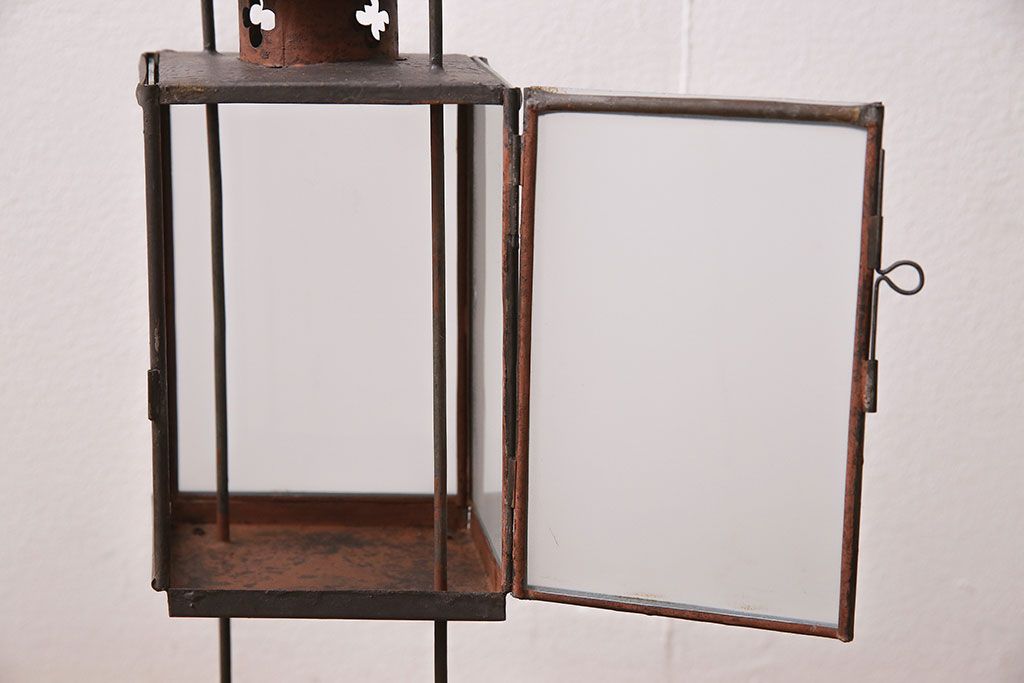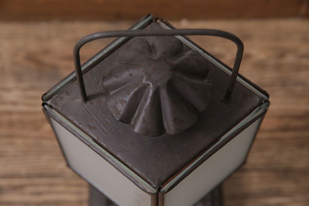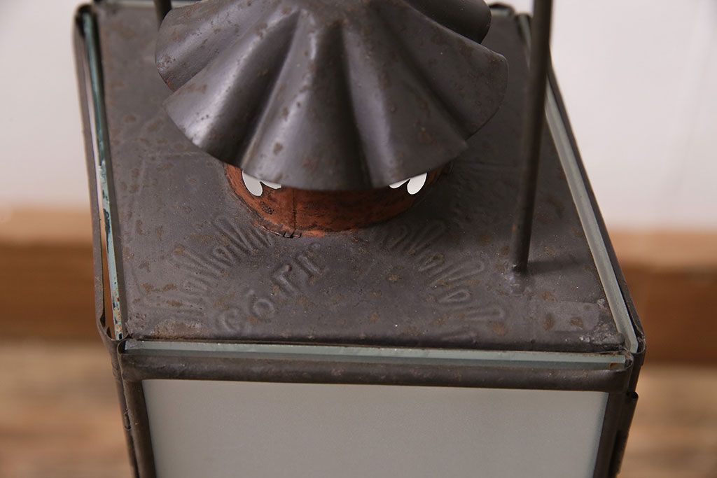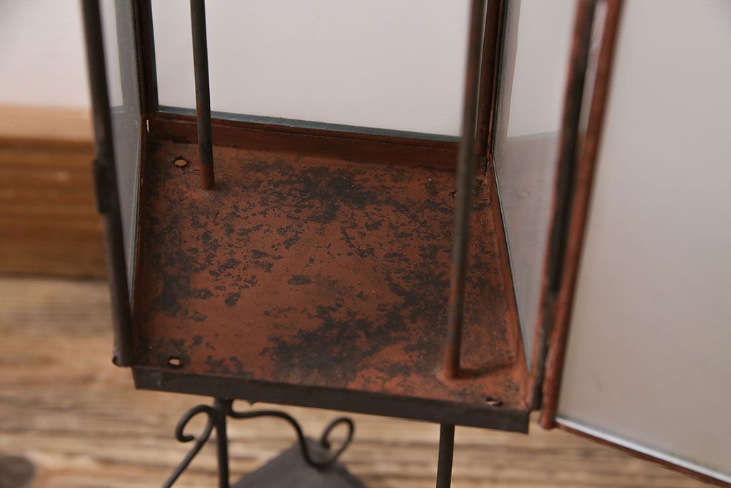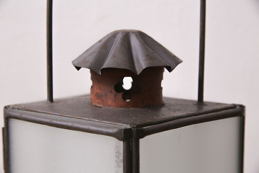 アンティーク雑貨 古民具 大正期 すりガラス入り 鉄製の行灯(行燈、照明、スタンド)(R-045660)