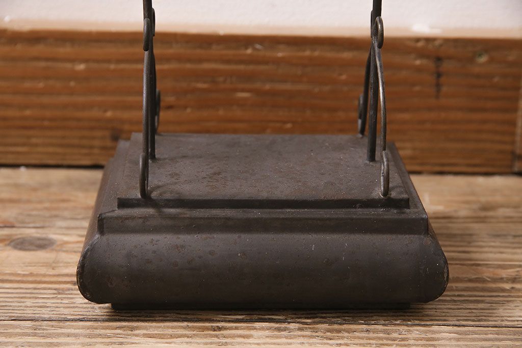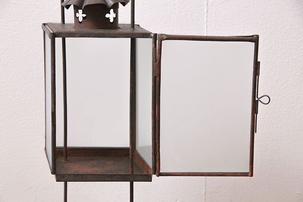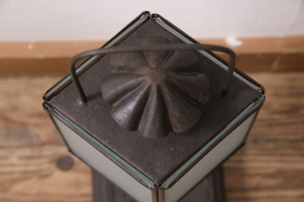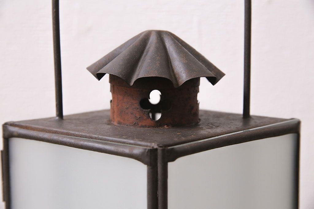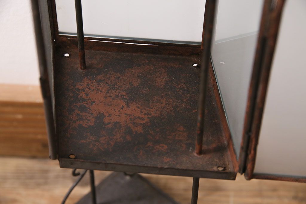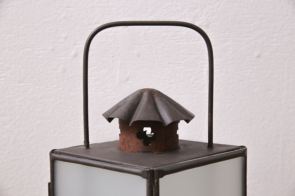 アンティーク雑貨 古民具 大正期 すりガラス入り 鉄製の行灯(行燈、照明、スタンド)(R-045661)
