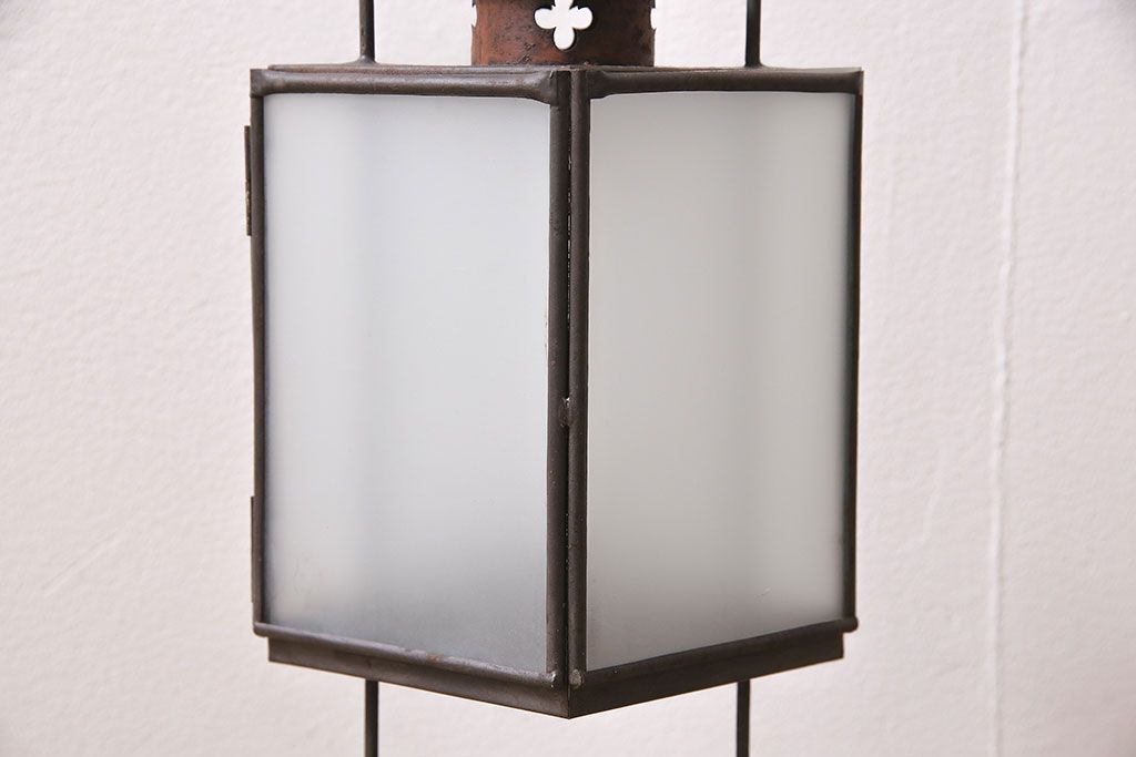 アンティーク雑貨 古民具 大正期 すりガラス入り 鉄製の行灯(行燈、照明、スタンド)(R-045661)です。