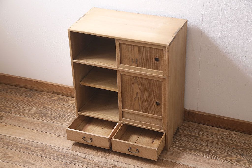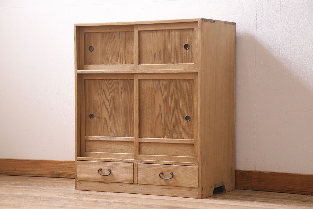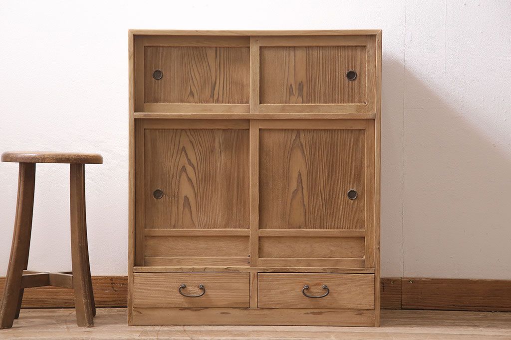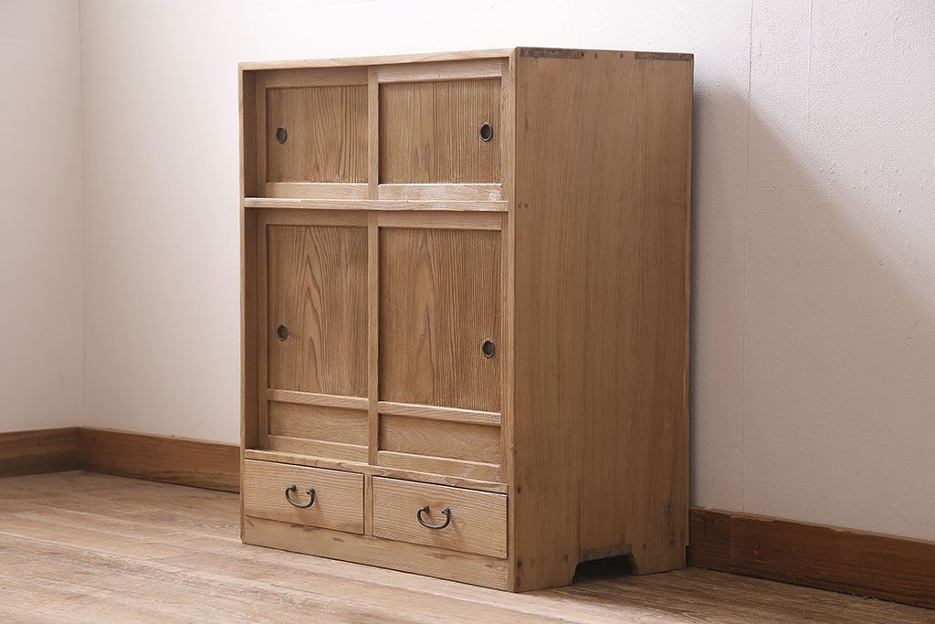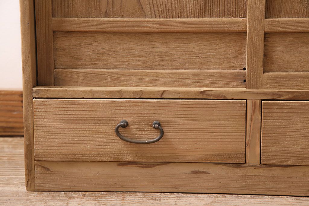 アンティーク家具 昭和初期 ストリップド(剥離) 味わいある風合いが魅力の戸棚(収納棚、キャビネット)(R-045644)