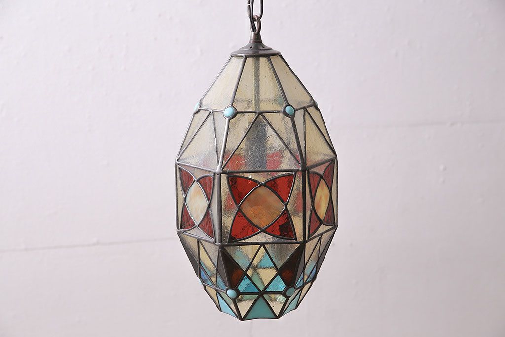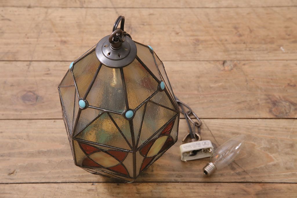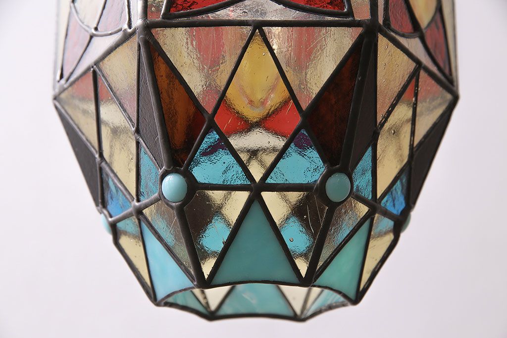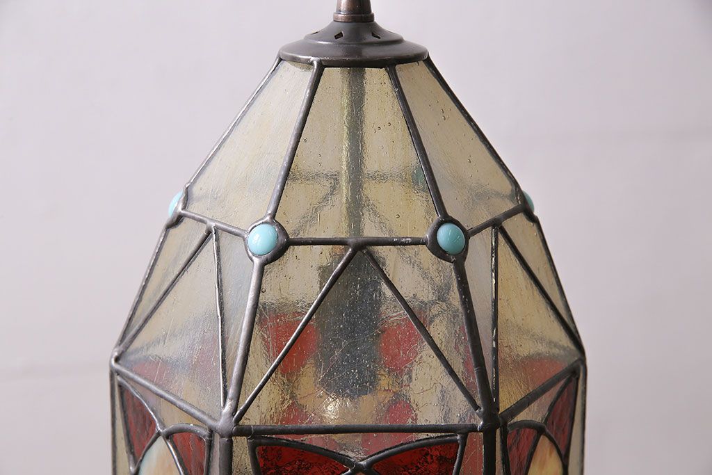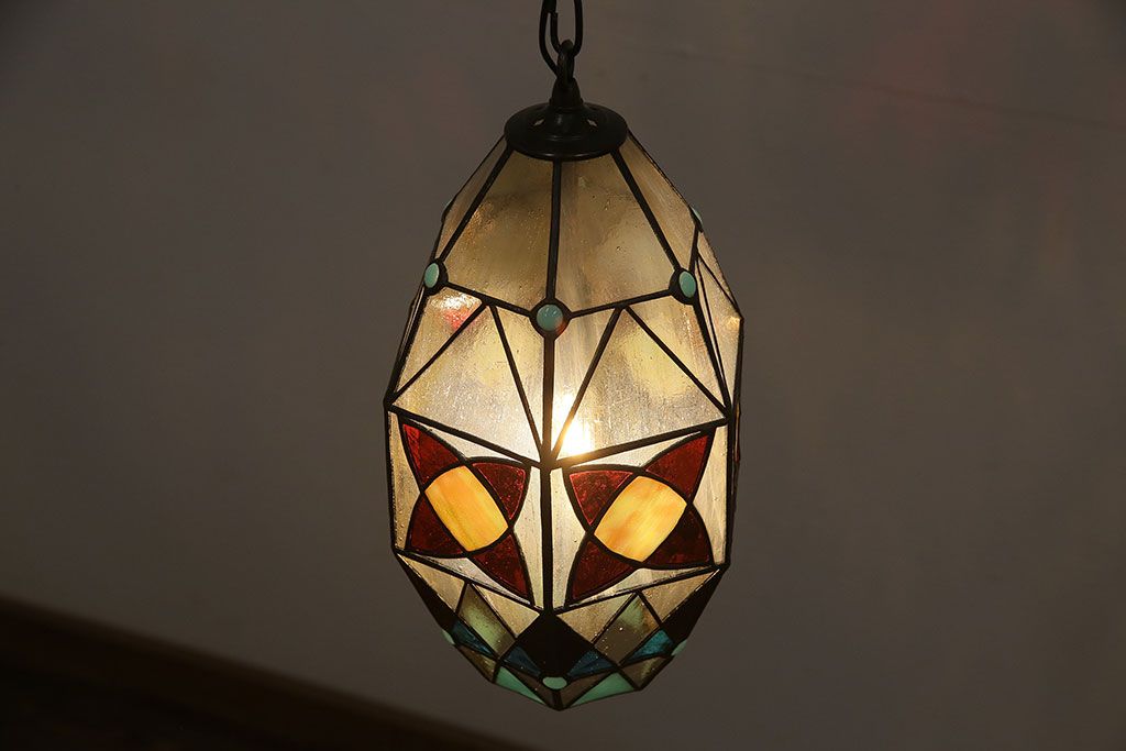 照明・ランプ> ペンダントライト > ヴィンテージ照明 イギリスビンテージ ステンドグラスがお洒落なアクセントのペンダントライト(吊り下げ照明、天井照明)(R-045656)