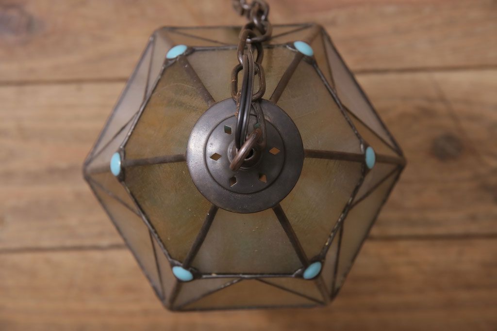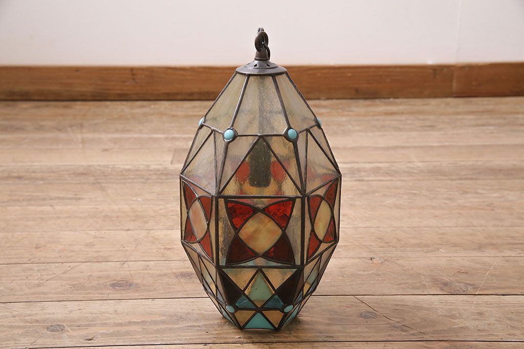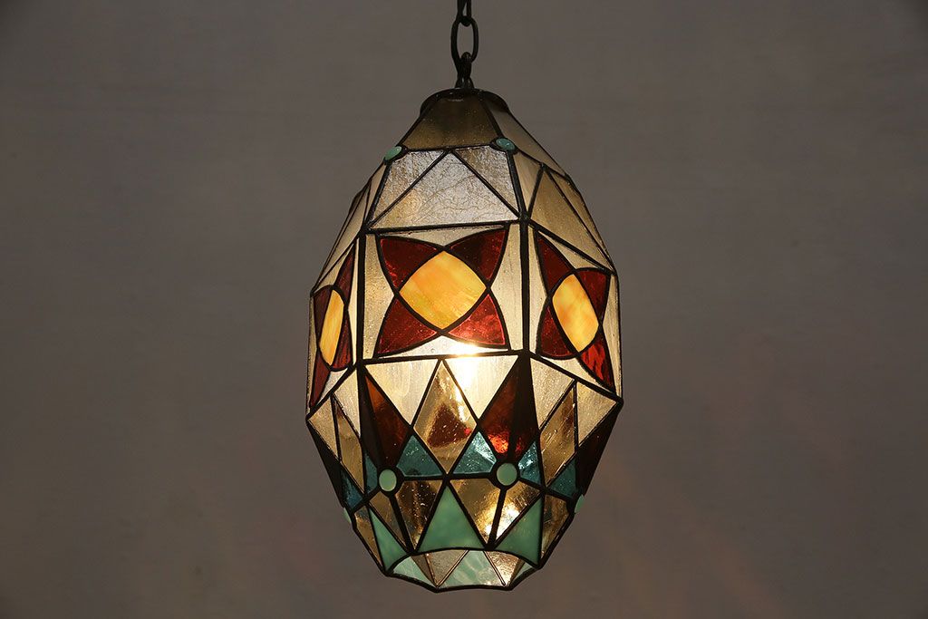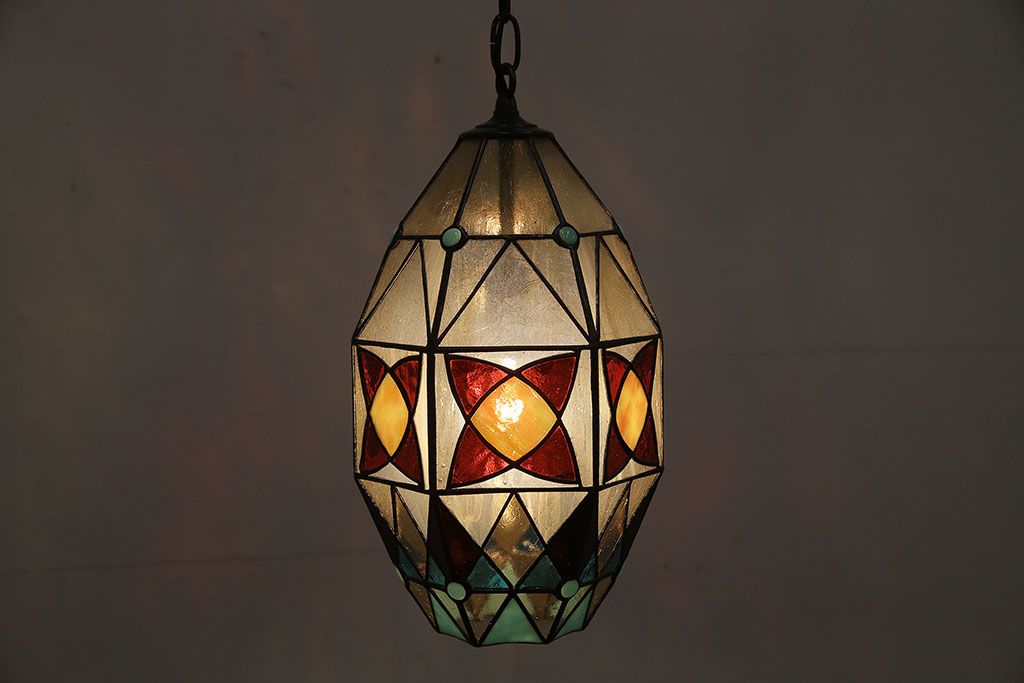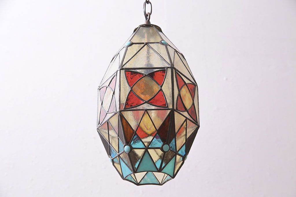 照明・ランプ> ペンダントライト > ヴィンテージ照明 イギリスビンテージ ステンドグラスがお洒落なアクセントのペンダントライト(吊り下げ照明、天井照明)(R-045656)