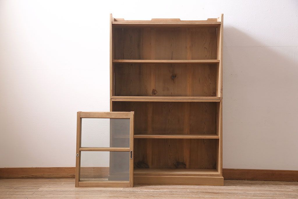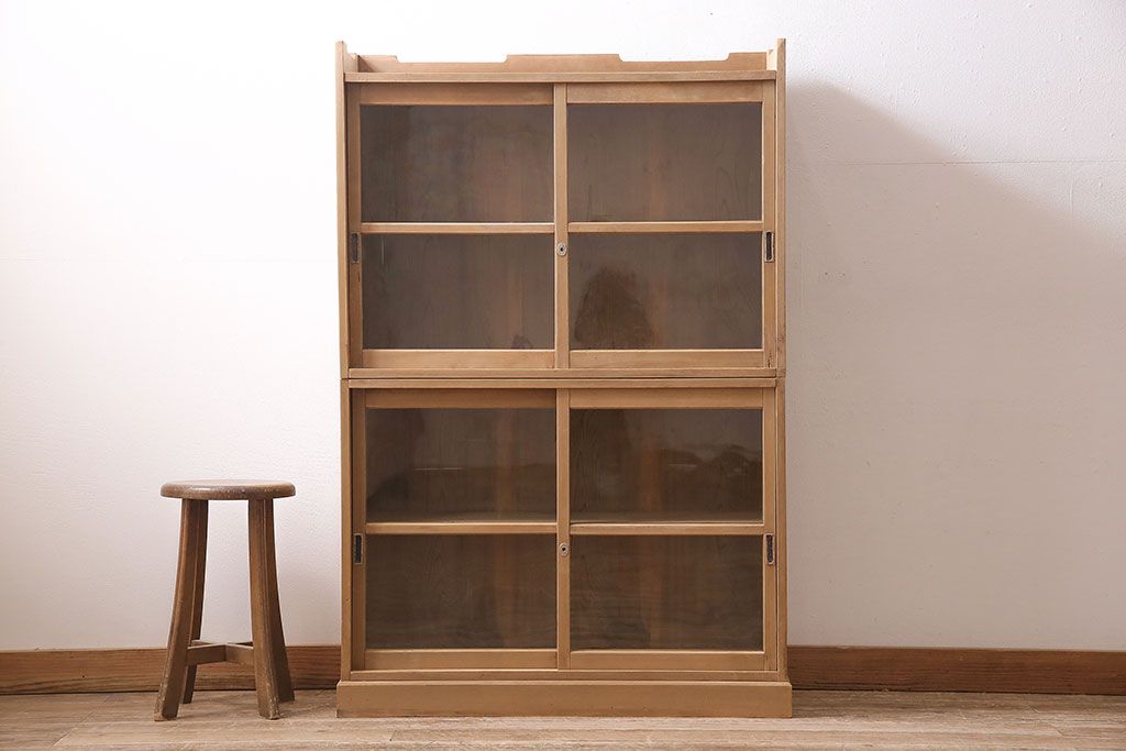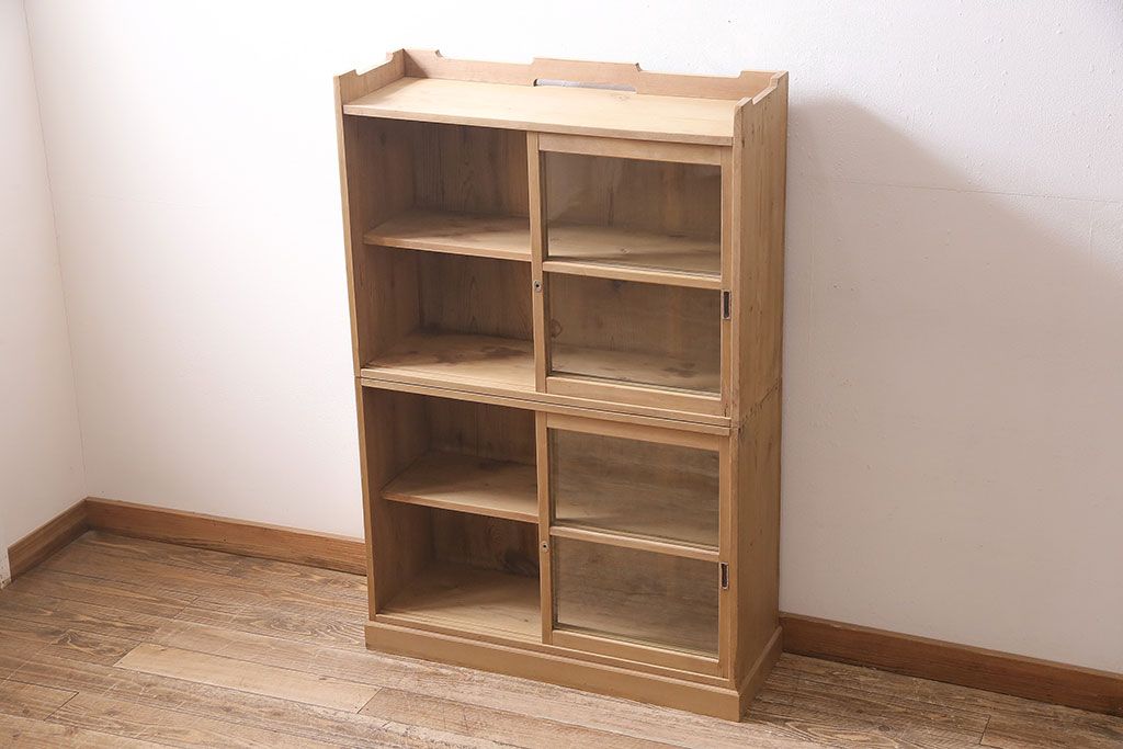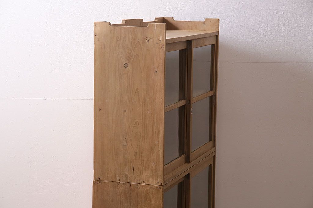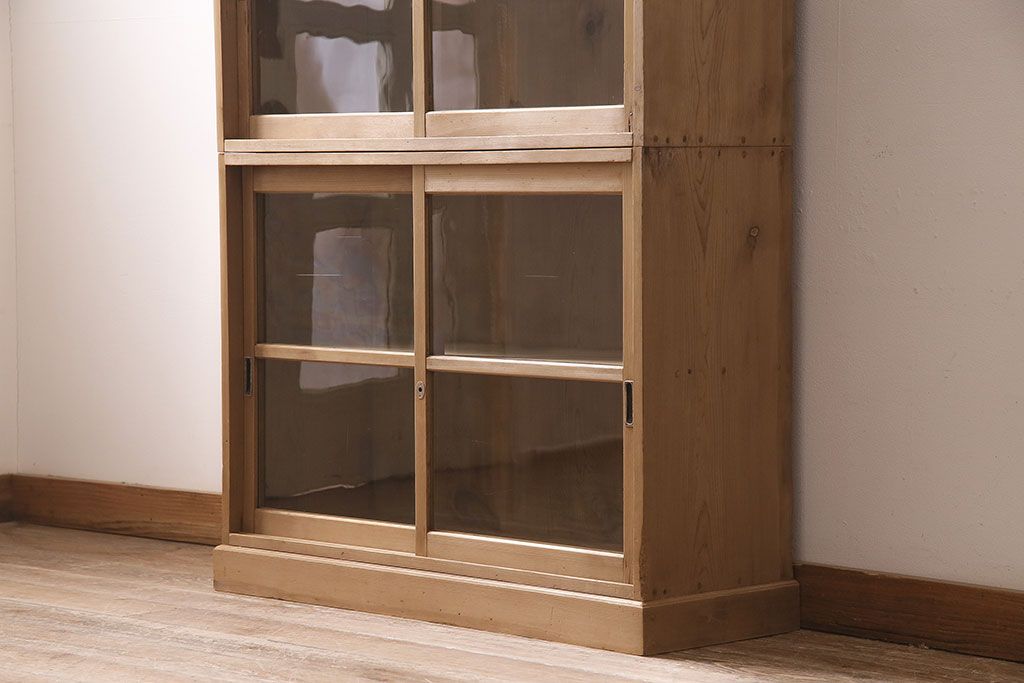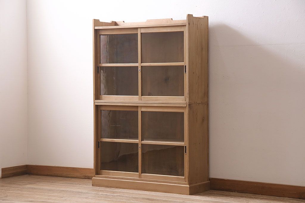 アンティーク家具 大正昭和初期 ストリップド(剥離) ゆらゆらガラスがレトロな雰囲気を高める重ねキャビネット(飾り棚、陳列棚、収納棚)(R-038601)です。